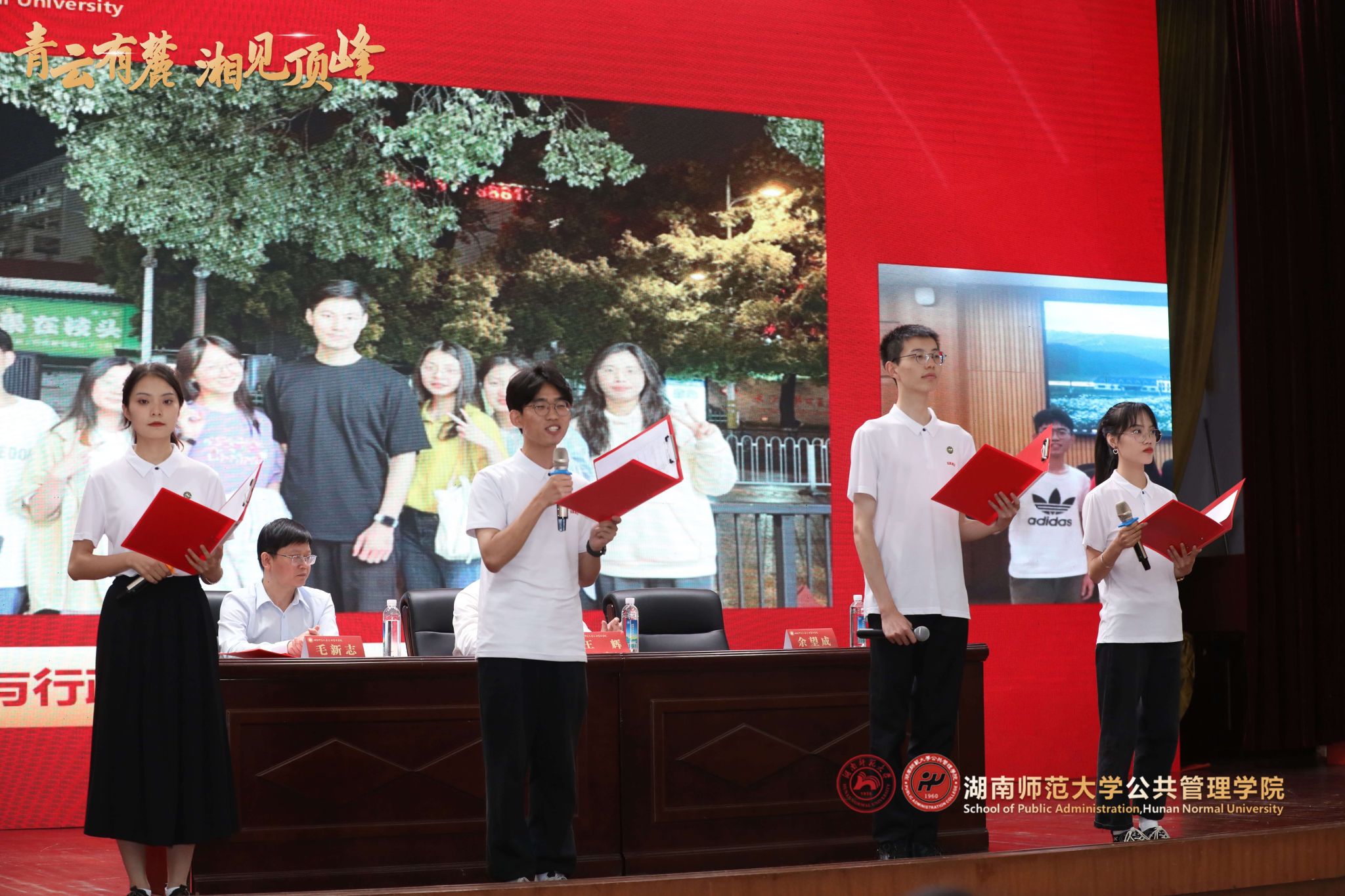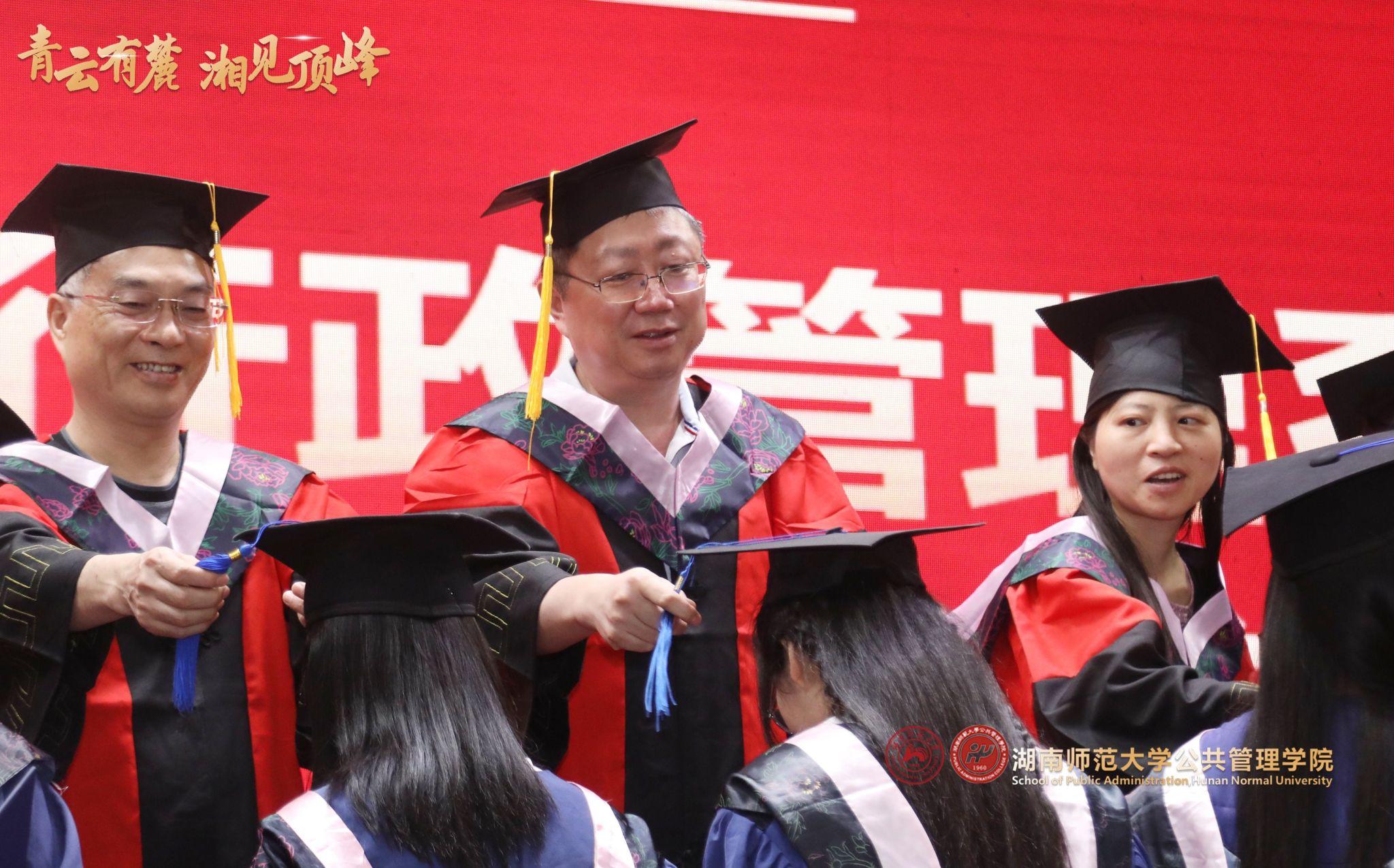 研究生代表彭理强、段潇涌、陈莹曦、杨洁、宋雪玲、朱武桥五位同学代表各学位点全体毕业博士和硕士研究生发言,表达他们对学院和导师们悉心栽培的深深谢意以及对全体毕业生研究生们的美好祝福,深情回忆在湖师大、在公管院的青葱岁月与成长收获。