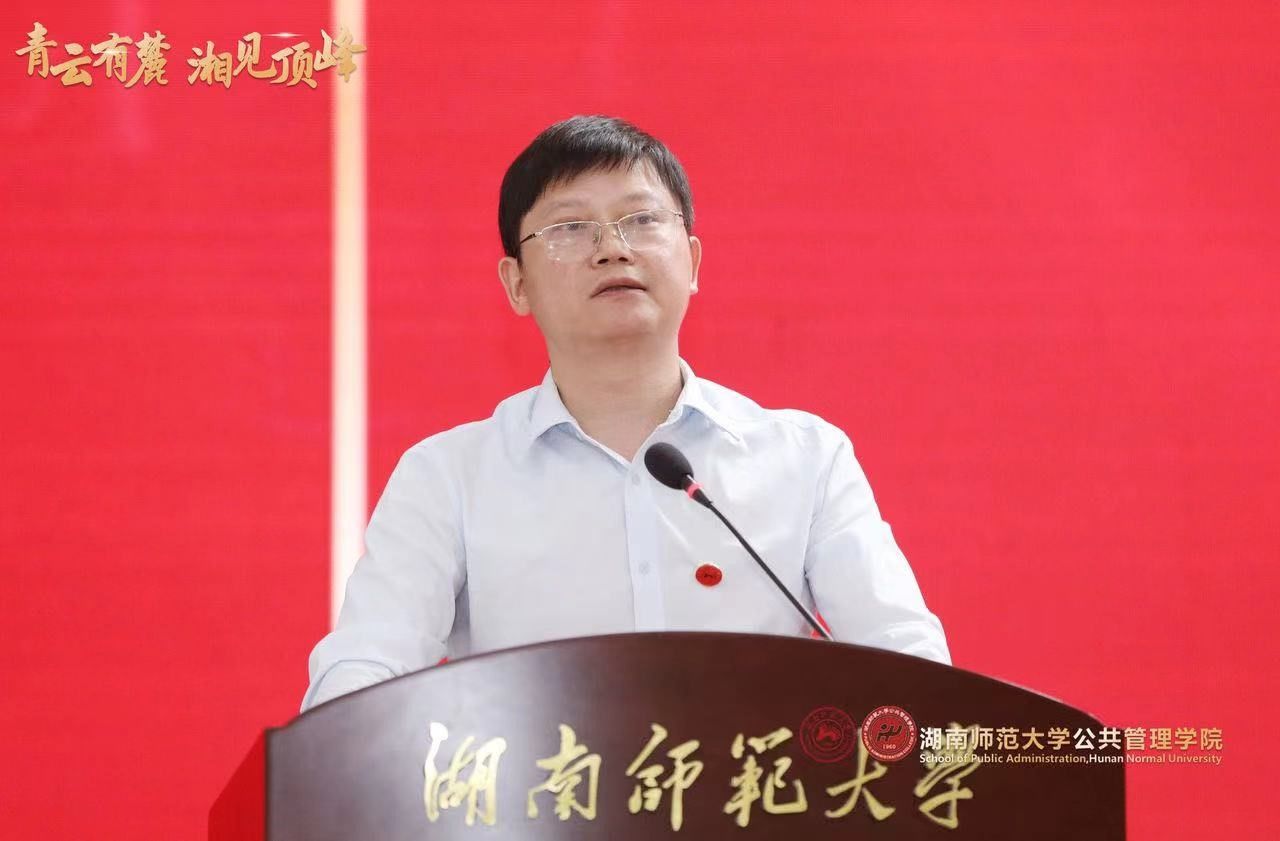 院长毛新志教授代表学院致辞。他充分肯定了学院师生共同努力所收获的成就与佳绩,向全体毕业生表达祝贺与期待,勉励全体毕业生们在未来的人生道路上厚植家国情怀、始终艰苦奋斗、敢于直面挑战;期待毕业生们“常回母校看看。