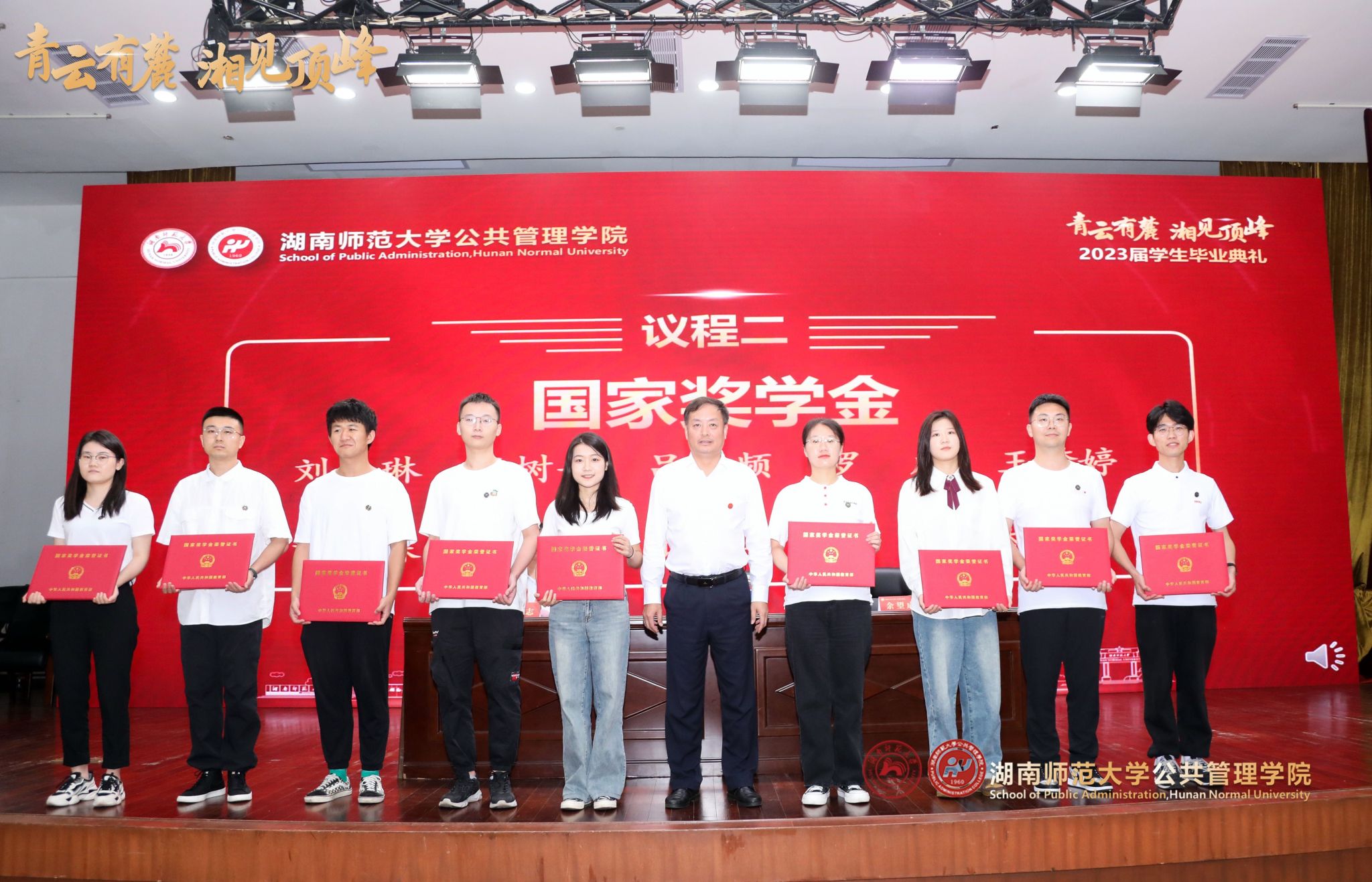 主持人余望成书记依次宣读“国家奖学金”、“2023届湖南省优秀毕业生”、“2023届英国正版365首页优秀毕业生”以及“2023届英国正版365首页优秀本科毕业论文”获奖毕业生名单;受邀领导和嘉宾分别为获奖毕业生颁发荣誉证书并与获奖同学合影留念,表达对毕业生同学即将踏上锦绣前程、迈向未来的期许与祝福。