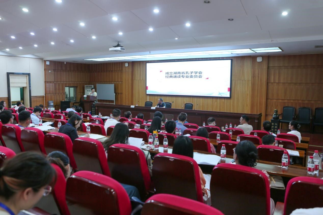 在学会议事阶段,易培、尹建华、邹秀玲、彭翔、蒋文婕等理事或会员代表积极为学会未来的发展献计献策,提出了成立经典诵读专业委员会、开展文庙国学实践活动、加强与媒体合作等宝贵建议。在各位常务理事、理事和会员代表们的一致赞同下,当场即成立了“湖南省孔子学会经典诵读专业委员会”。