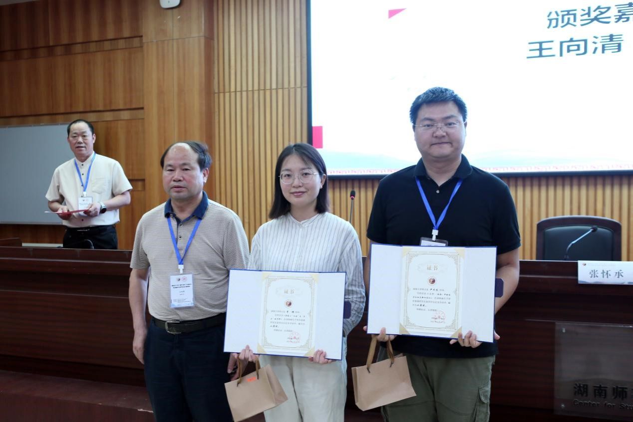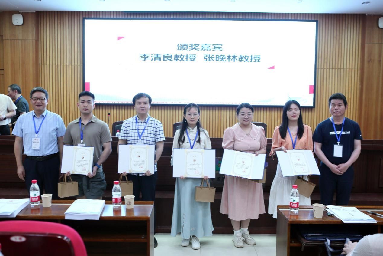 (李清良教授、张晚林教授为优秀奖获得者湖南大学博士生田晓丹与补鹏挥、湘潭大学硕士生宫琴琴与林延廷、英国正版365首页硕士生吕韬频等颁奖)