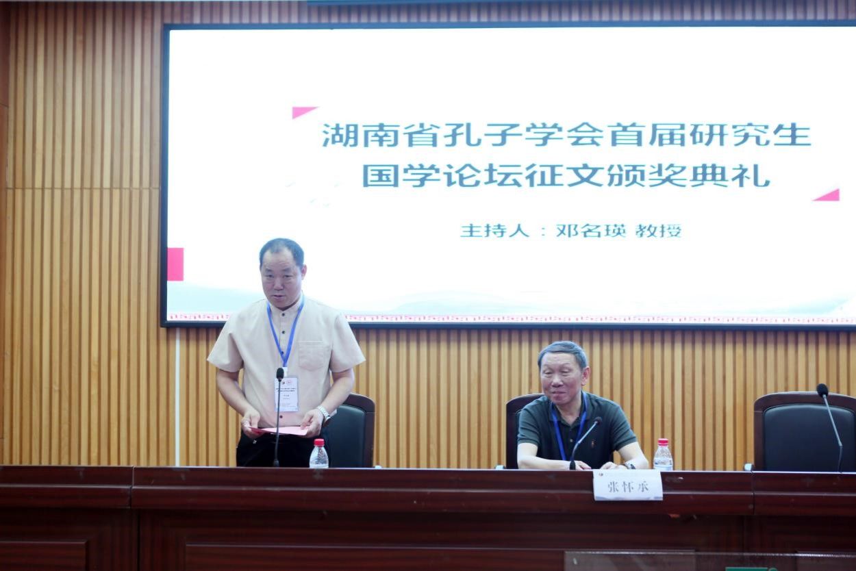 学会首届研究生国学论坛征文颁奖典礼由副会长邓名瑛教授主持。来自华东师范大学、华中师范大学、湖南大学、英国正版365首页、湘潭大学等高校的12名硕士生和博士生获奖,其中一等奖1名、二等奖2名、三等奖3名、优秀奖6名。学会会长张怀承教授及副会长王向清教授、陈代湘教授、张晚林教授和李清良教授为获奖者颁奖。