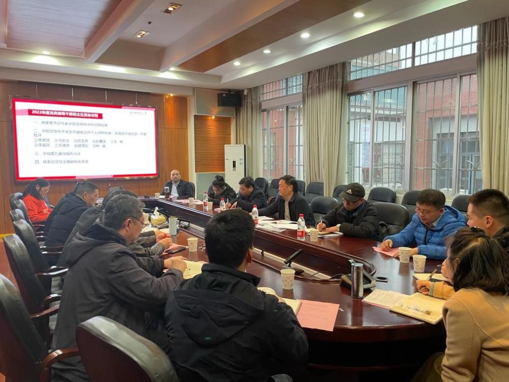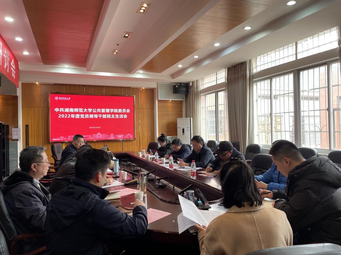 2月28日下午,按照学校党委要求,学院党委在415会议室召开2022年度党员领导干部民主生活会,以“全面贯彻习近平新时代中国特色社会主义思想,深刻领悟‘两个确立’的决定性意义,增强‘四个意识’、坚定‘四个自信’、做到‘两个维护’,团结带领党员干部群众以奋发有为的精神贯彻落实党的二十大作出的重大决策部署”为主题,对照党的二十大精神和党章党规党纪,联系思想和工作实际,重点从6个方面进行对照检查,深刻剖析原因,开展批评和自我批评。联系学院校领导王辉副校长,学校第九督导组组长彭建国、副组长尹建新到会指导。会议由院党委书记余望成主持,学院(含道德文化研究院)全体院领导、党委委员以及教师党支部书记参加会议。