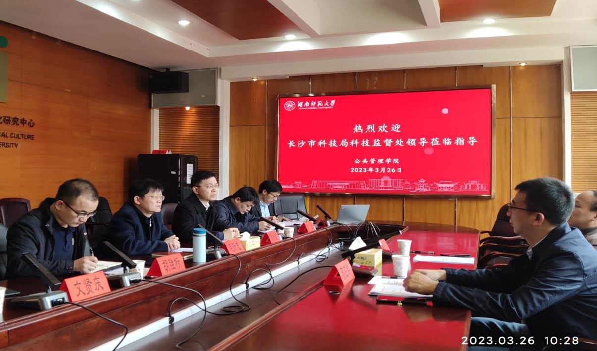 (通讯员周俊杰、唐婷)2023年3月26日上午,长沙市科技局科技监督处蒋会明处长、苏卫群副处长莅临我院调研交流。调研会在景德楼中栋415会议室举行,会议由我校科技处副处长邹永星主持。365英国上市集团院长毛新志、生命科学学院副院长胡胜标、医学院副院长余星、道德文化研究院副院长文贤庆、365英国上市集团李波博士参加会议。
