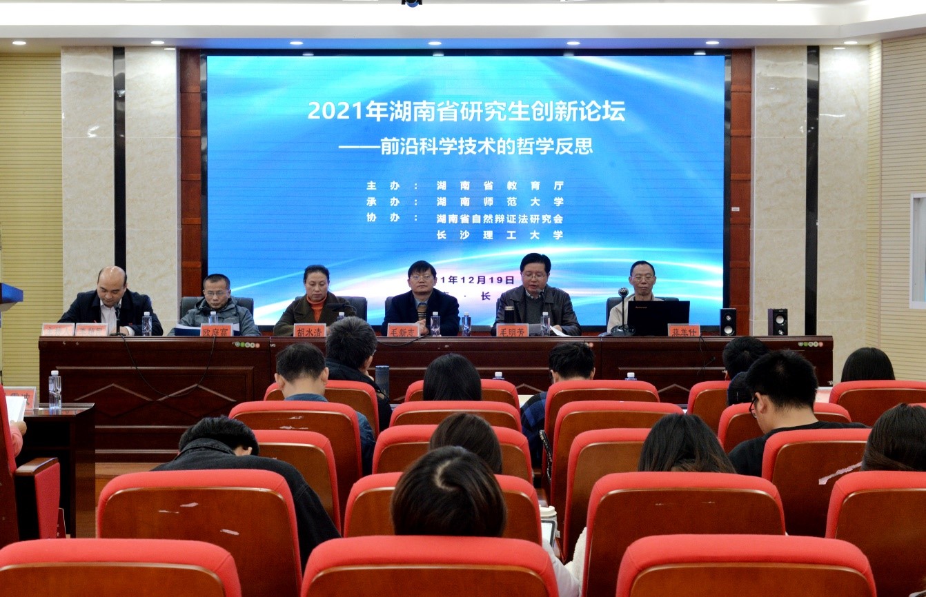 12月19日,由湖南省教育厅主办,英国正版365首页承办,湖南自然辩证法研究会和长沙理工大学协办的“2021年湖南省研究生创新论坛”以英国正版365首页为线下主会场、长沙理工大学为线下分会场,并结合线上线下的新颖形式如期展开。会议以“前沿科学技术的哲学反思”为主题,来自清华大学、中国人民大学、中国科学院大学、中央党校、中山大学、武汉大学、华中科技大学、东南大学、长沙理工大学和英国正版365首页等36所高校的108名硕士研究生、博士研究生和22位专家学者一起参加了五个专题共14个场次的会议。