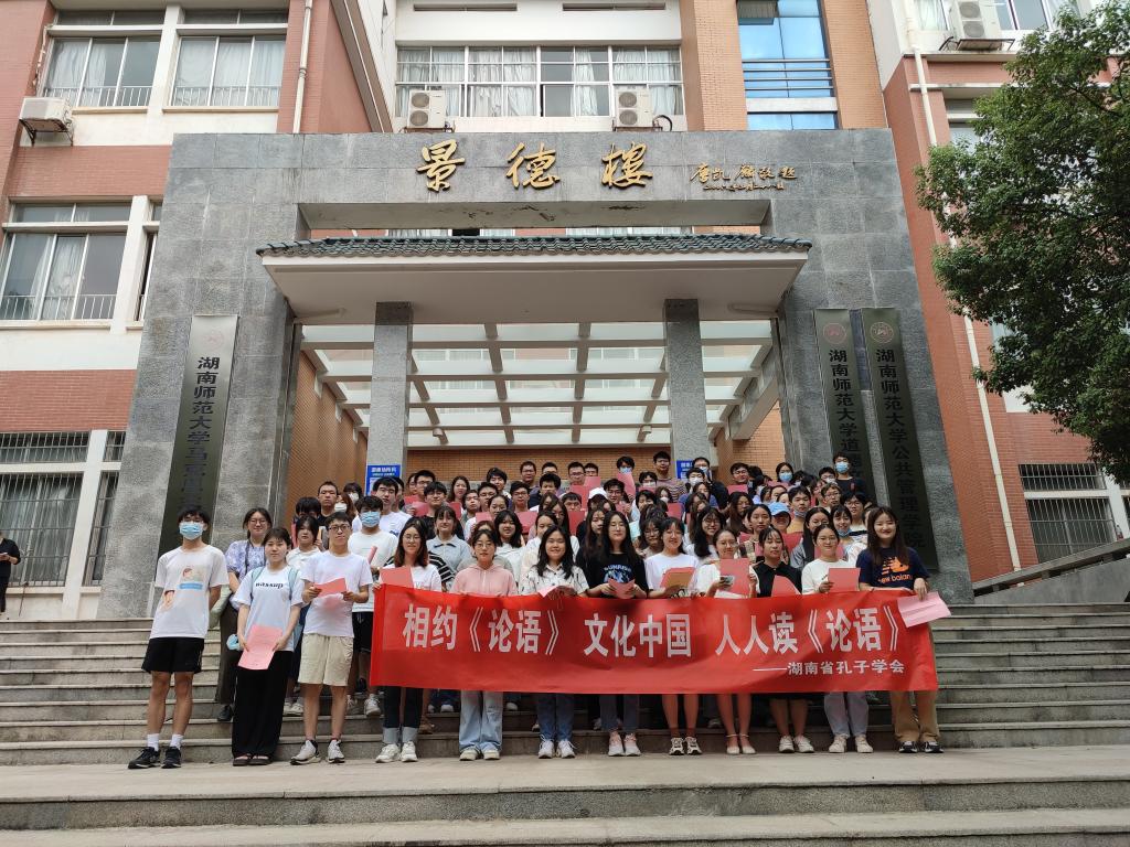 9月28日上午,为了纪念孔子诞辰二千五百七十三周年,致敬伟大的至圣先师,致敬不朽的人文经典,积极传承与弘扬中华优秀传统文化,提升大学生的文化自信与国学涵养,湖南省孔子学会组织哲学系2019、2020、2021级本科生在景德楼门前诵读《论语·学而》第一、四、六、十四章。“为天地立心,为生民立命,为往圣继绝学,为万世开太平。”希望学子们学究天人、思贯古今、德业兼修,能够积极发扬仁爱精神,深厚培植家国情怀,奋力承担文化使命。
