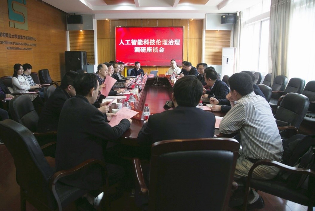 院长毛新志作题为“人工智能科技伦理治理”的报告。他主要从英国正版365首页人工智能伦理的研究基础与学科平台优势、湖南省人工智能伦理治理重点研究基地(拟建平台)和基地发展的思路与规划等三个方面进行了汇报。