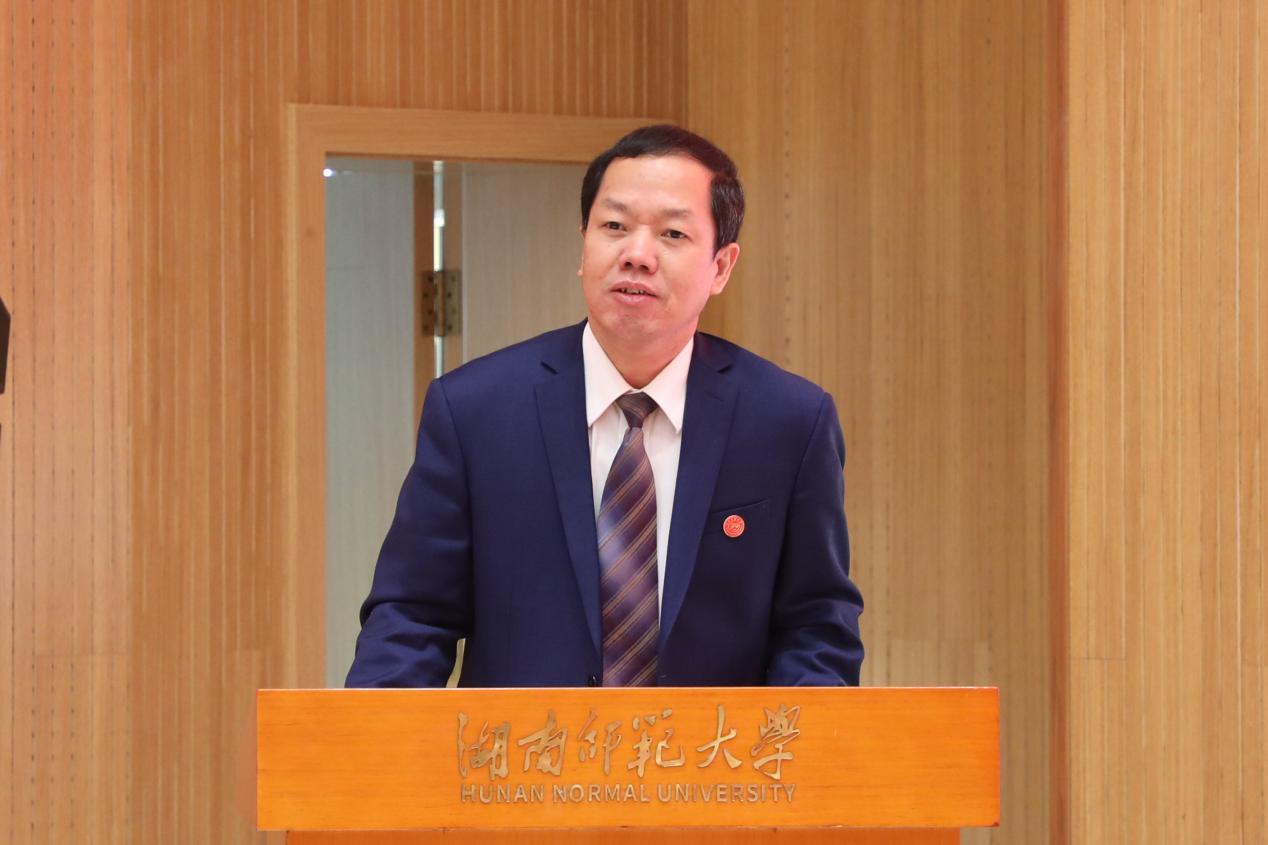 文选德对研究院的成立表示诚挚的祝福。他肯定了我校哲学社会科学研究在湖南及中南区域的地位,回顾了党史党建学科的发展历程,高度赞扬了谭双泉等老一辈学者对学科创立和发展的贡献。他对中国共产党建党相关问题研究、马克思主义中国化问题研究等问题作了深入阐发,并对党史党建研究院的发展提出殷切希望。他勉励研究院百尺竿头更进一步,产出更多高质量成果,充分发挥党史党建研究的资政育人作用,为推动高校党史党建学科发展,服务党和国家工作大局,繁荣发展中国特色哲学社会科学作出新的更大贡献。