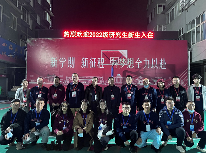 晚上八点,院长毛新志、党委书记余望成、道德文化研究院院长向玉乔、学院副院长王敏、李超民、副处级组织员林峻、社会学罗忠勇老师、社会工作孙建娥老师、研究生办全体老师前往靳江宿舍区看望2022级新生。走访中,院领导首先对同学们加入公管院这个大家庭表示了热忱欢迎,并就学生住宿环境、饮食问题、安全问题及寝室卫生等方面与同学们进行了亲切交谈,希望同学们尽快完成角色转换,在新学期博学笃行,以良好的开端,开启新征程。学院老师的亲切慰问,让同学们感受到了学院这个大家庭的温暖和关怀,纷纷表示一定会以积极上进的态度迎接自己的研究生生活,不辜负家长、老师和学院的期望,成为一名政治上可靠、能力上过硬的优秀研究生。