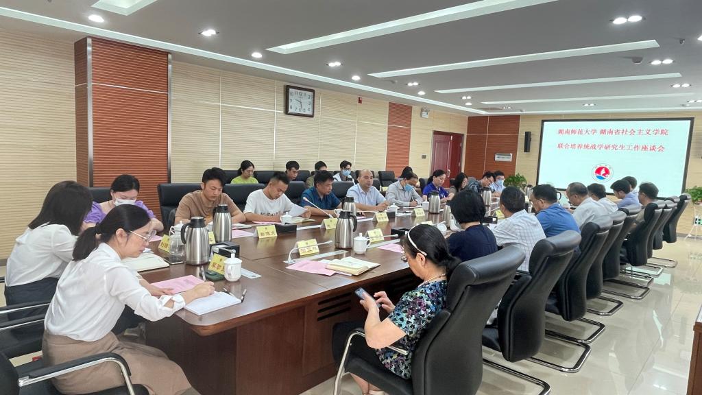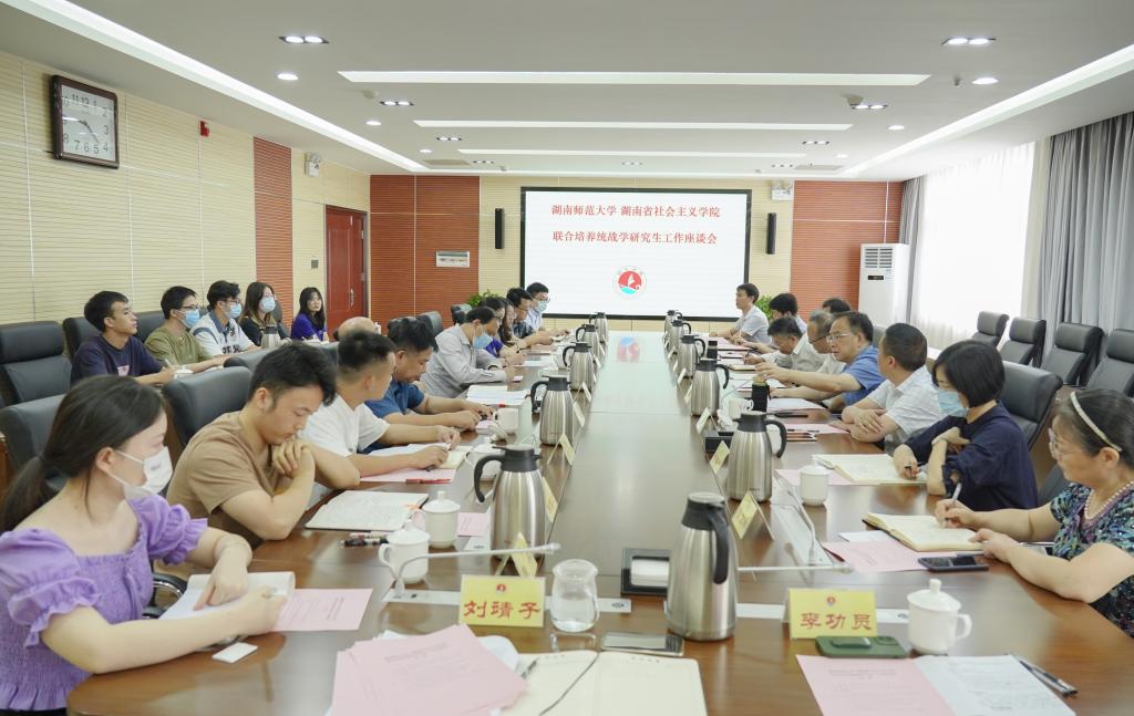 9月30日上午,英国正版365首页—湖南省社会主义学院联合培养统战学研究生工作座谈会在省社会主义学院隆重召开。湖南省委统战部副部长、省社会主义学院党组书记丁学新、湖南省社会主义学院院长雷鸣强、副院长黄自荣、原一级巡视员周述杰教授、教研部主任陆亚林等领导和教师出席会议。