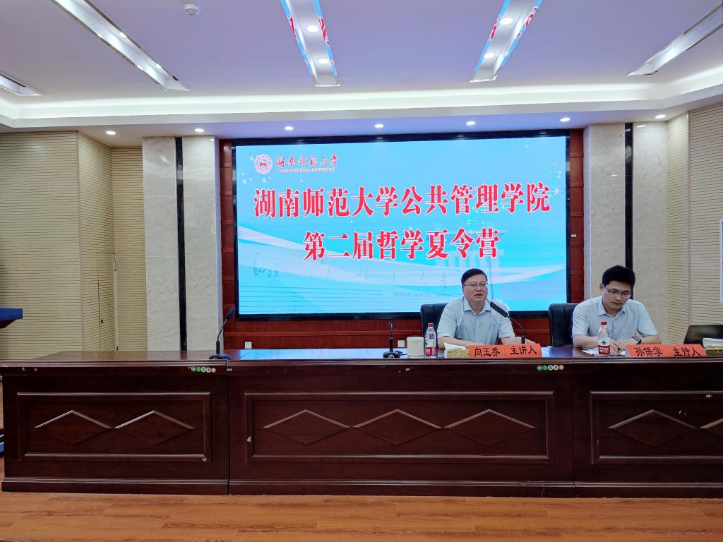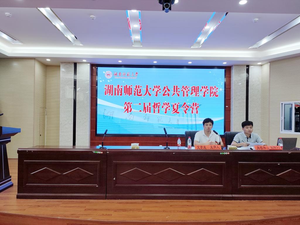 7月20日下午,哲学夏令营闭幕式在博后楼401报告厅如期举行。哲学系副主任孙保学副教授主持闭幕式。首先,2021级外国哲学方向研究生罗晓军同学作为我校首届哲学夏令营学员代表及我系优秀研究生代表进行发言;其次,山西大学哲学社会学学院魏胤妤、湘潭大学碧泉书院杨家亓代表本届夏令营学员分享其学思感悟;最后,英国正版365首页道德文化研究院常务副院长暨哲学系主任向玉乔教授做总结讲话。闭幕式结束后,孙保学老师就本次夏令营的开展情况对学员们做了问卷调查,得到了广大学员的积极反馈。