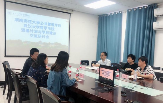 2021年5月12日下午,毛新志院长一行来到武汉大学哲学学院,与武汉大学哲学学院分管本科教学副院长李志教授、伦理学与政治哲学教研室主任陈江进教授、教学与科研管理办公室副主任陈苏一等举行座谈。座谈会上,毛新志院长介绍了此行调研目的和相关情况。武汉大学哲学学院副院长李志教授介绍了武汉大学哲学学院专业设置、强基计划的建设、哲学365英国与发展的有关情况。双方围绕哲学专业“强基计划”展开了深入交流,并就未来合作与交流提出了初步设想。