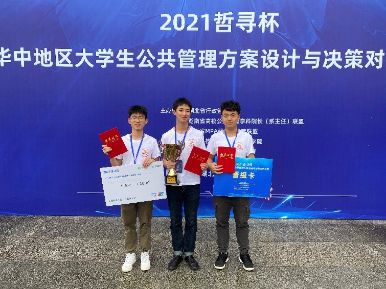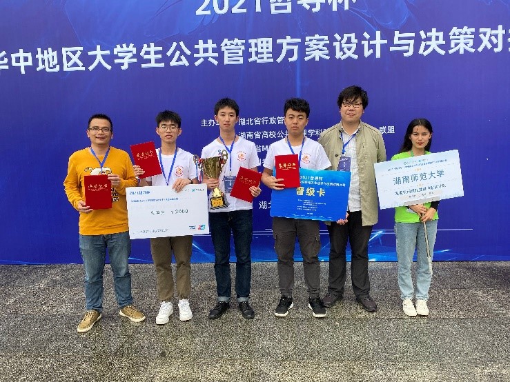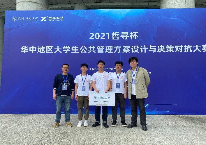 5月22至5月23日,由湖北省行政管理学会、湖南省高校公共管理学科院长(系主任)联盟和江西省MPA研究生教育联盟联合主办,武汉科技大学文法与经济学院承办的“哲寻杯”华中地区大学生公共管理方法设计与决策对抗大赛在湖北省武汉市举办。我院代表队从参与此次大赛的44所高校的45支队伍中脱颖而出,以华中赛区第一名的成绩晋级全国总决赛,荣获特等奖与最佳对抗决策奖。