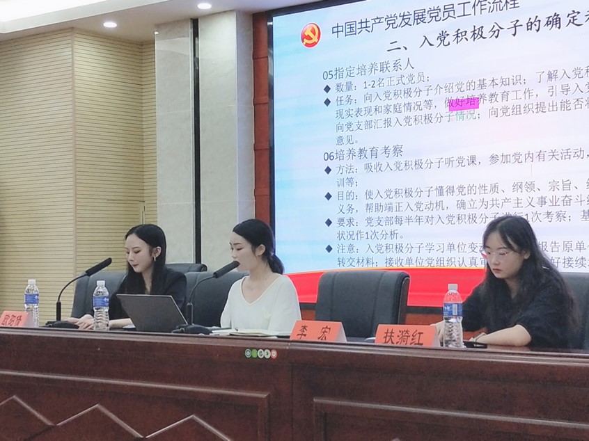 研究生党建工作指导委员会委员李宏、研究生会主席欧阳倩、19级年级主席扶漪红分别就365英国上市集团党建工作、研究生会与研团总支、年级委及其工作内容进行了详细讲解和说明。