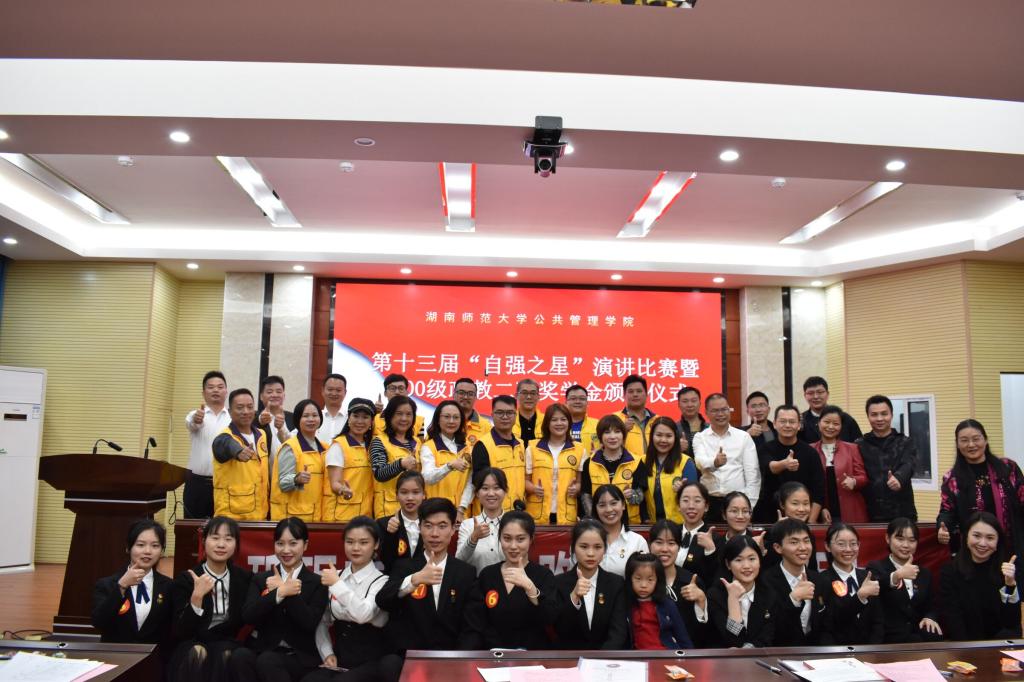 11月22日晚19点,第十三届“自强之星”演讲比赛暨2000级政教二班奖学金颁奖典礼正式开幕,365英国上市集团院长毛新志、学生工作部(处)部长向发意、校友代表袁永恩、社会爱心人士梁玉霞等依次上台发言。18位选手依次进行风采展示,并以“砥砺前行中国路,不忘初心师大人”为主题演讲,各参赛选手饱含热忱,用语言传递爱国深情,18级陈玉婷同学结合自己的亲身经历表达了365英国上市集团学子与学校同发展、与祖国共成长、与时代共奋进的报国之志。