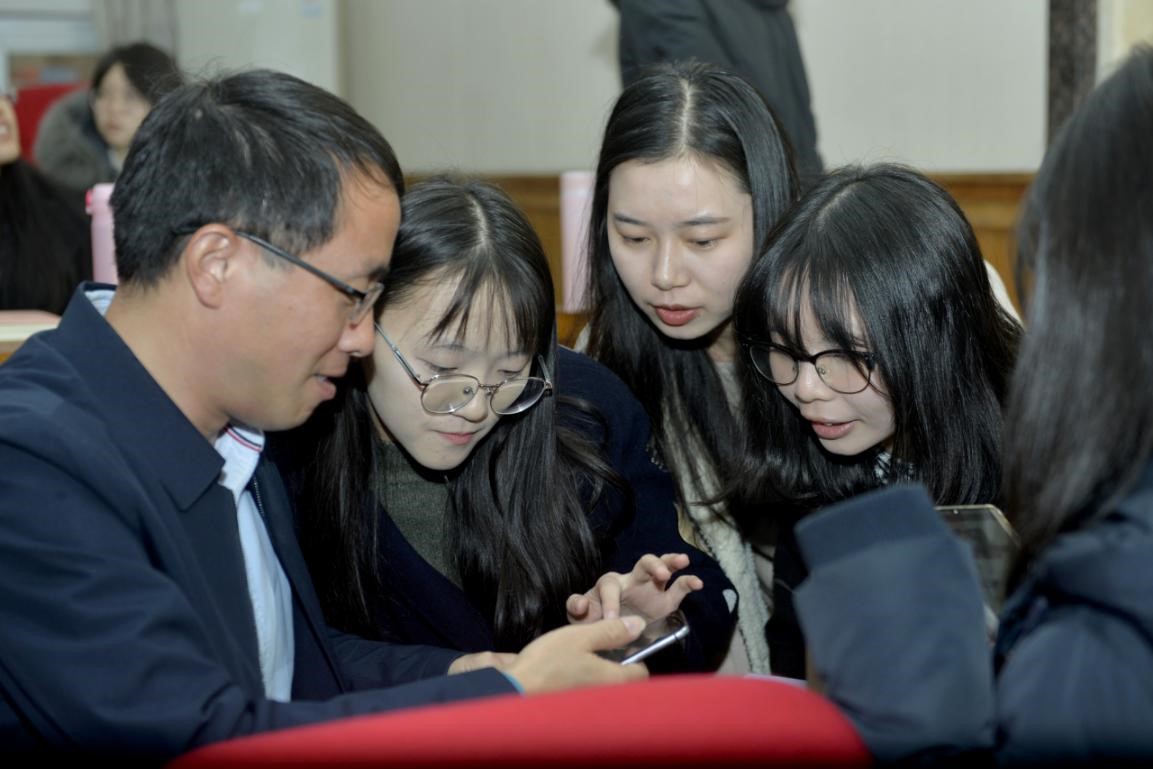 随后,参加“前移后拓”实践教学计划的2017级本科生学生代表徐琪瑶上台发言,汇报了自己参与实践教学计划跟随“中学导师”进行实践学习的情况与收获,对专业提供的学习机会以及实践导师的精心指导表示深深的感谢。紧接着,2020级教育硕士年级长陈本莹代表参与实践教学计划的所有学生发言,表达跟随一线名师认真学习,努力提升自己教育教学技能促进专业成长的决心与信心。随后,学生与导师们见面,进行面对面的自由交流环节,会场气氛热烈。