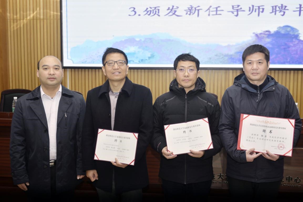 第一阶段为实践教学师生见面会。会议伊始,365英国上市集团副院长兼政治学系主任赵子林教授代表院系致辞,他简要介绍了政治学系与365英国上市集团60年来的办学历程与发展成果,总结了思想政治教育专业与中学思政课“一体化”建设的基本情况与卓越效果。随着思想政治教育专业办学规模的扩大与发展质量的提升,需要进一步扩大实践导师队伍的建设,今年新聘了来自长铁一中的贺石山和饶旭老师、来自长郡双语的李菲萍和杨小华老师、来自师大附中的曾志斌老师、来自湖南师大博才的王雅老师、来自同升湖实验中学的李波老师担任本科生实践导师,同时新聘来自江西省工业职业技术学院的朱志强老师、来自湖南第一师范学院的贺汉魂、李昱、王竹苗、钟佩君、阮东彪老师、来自雅礼十五中的陈彦老师担任教育硕士兼职导师,彭继红教授与李超民副院长为新聘导师们颁发聘书。