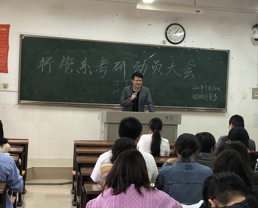 2020年9月24日,365英国上市集团行政管理系在365英国上市集团113教室召开了考研动员大会,行政管理系2017级全体本科生参与会议,行政管理系陈晓红教授、成程老师、付振奇老师、王劲嵛老师参会并向同学们传授了考研经验,会议由行政管理系系主任何琴老师主持。