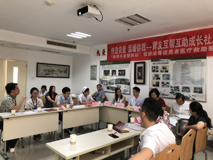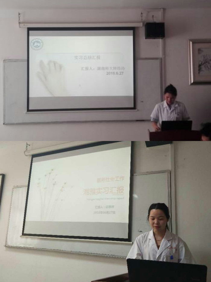 2018年6月27日下午,“2018年度第一期英国正版365首页社会工作专业研究生中南大学湘雅医院实习总结暨2018年中央财政支持社会组织参与社会服务项目专题督导会”在中南大学湘雅医院肾内科示教室顺利举行。我院社会工作专业硕士生导师孙建娥教授、史铁尔教授、胡建新副教授、谭卫华老师、郭庆老师,以及钟玲玲、邱惠婷、丁婷、龙欣4名社工硕士实习生参加了本次会议。会议设为实习汇报会和专题督导会上下半场。