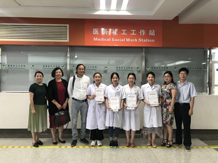 接着,湘雅医院社会工作部的实践导师分别点评了自己所带的实习生。实习生们积极的社工初心、主动的工作态度、良好的专业素养得到了实践导师们的一致好评。最后,我院的专业导师分别发表了感受和体会,一是感谢湘雅医院在我院社会工作人才培养中一直以来的支持和帮助,并表示湘雅医院医务社会工作部的实习工作非常的制度化、规范化、体系化,二是鼓励同学们在实习当中要积极投入、多思考,为学位论文的撰写准备资料,为社会工作实务的发展贡献力量。实习汇报会结束后,湘雅医院社会工作部的实践导师分别为4名实习生颁发了实习结业证书。