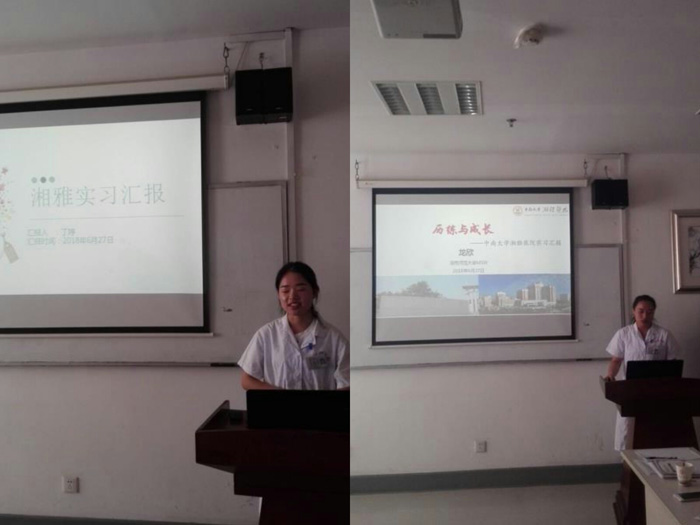 会议上半场为实习汇报会。首先由4位实习生进行汇报。这4名研究生分别在不同的科室进行专业实习,涉及儿科、肿瘤科、肾内科、骨科、急诊科等诸多科室,可见医务社会工作对不同患病人群的积极关注。在汇报的过程中,每名研究生都精心准备了PPT,落落大方地阐述了自己在医院医务社会工作部实习的经历、感受和心得,并重点叙述了自己在实习中所开展的活动,例如制作爱心营养汤、开展“滚蛋吧,压力君”小组活动、开展“骨动希望”小组活动等等。通过此次来之不易的专业实习机会,她们真正意义上接触到了医务社会工作实务,为今后的求职、晋升增添了宝贵的财富和砝码。