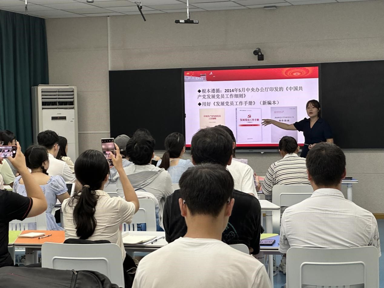 (通讯员:黄颖格)为加强学生基层党组织建设,进一步提升学生党务工作者业务素质和工作能力,更好地发挥学生党支部的战斗堡垒作用和党员先锋模范作用,9月19日中午,学院党委在景德楼中栋209智慧教室组织召开学生基层党组织建设党务工作培训会。会议邀请学校党委组织部文敏老师作学生党支部党员发展专题培训;学院组织人事秘书毛影黛老师主持会议。学院党建工作指导委员会全体成员、各学生党支部支委班子及部分党员代表参加培训。