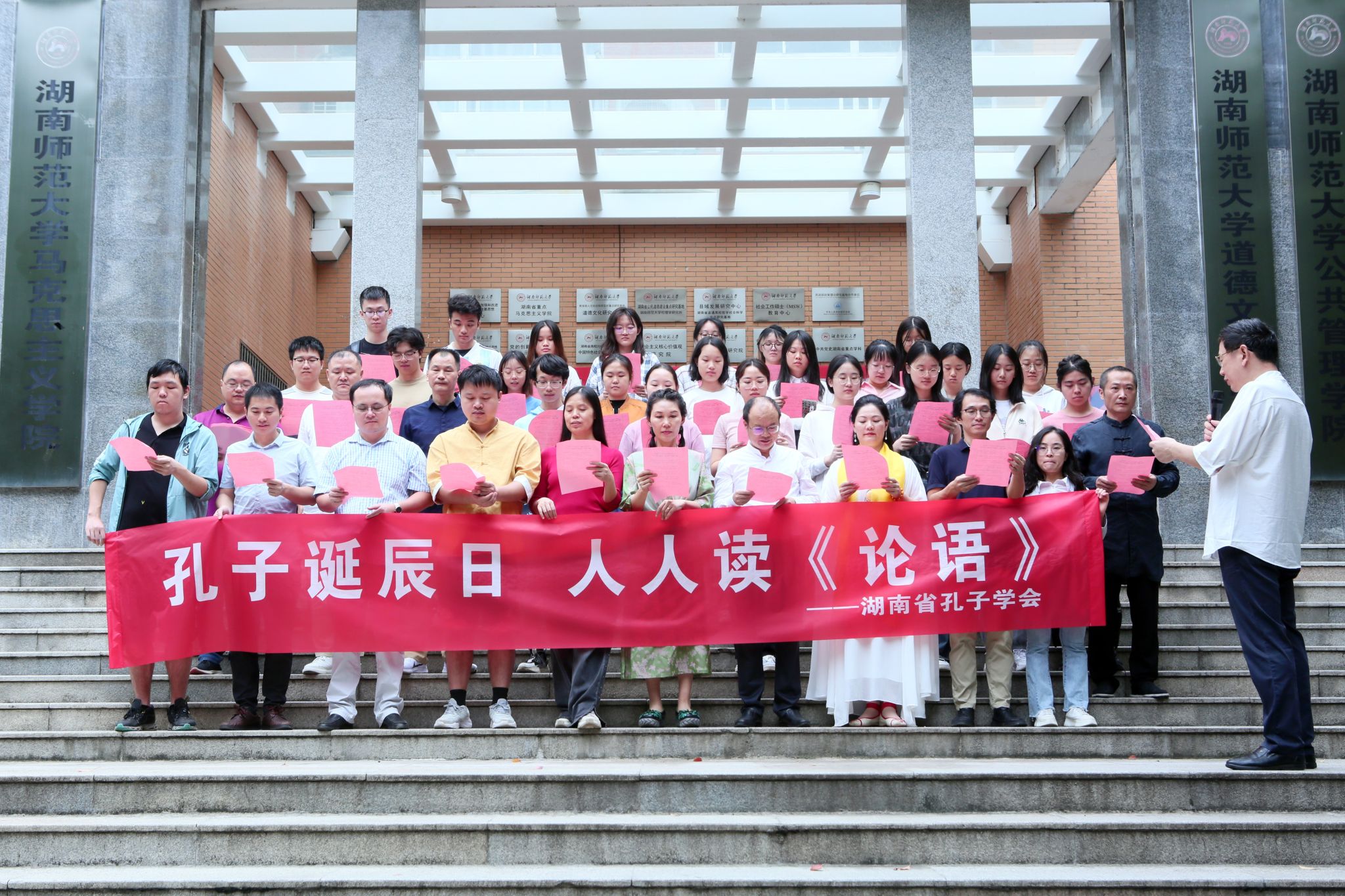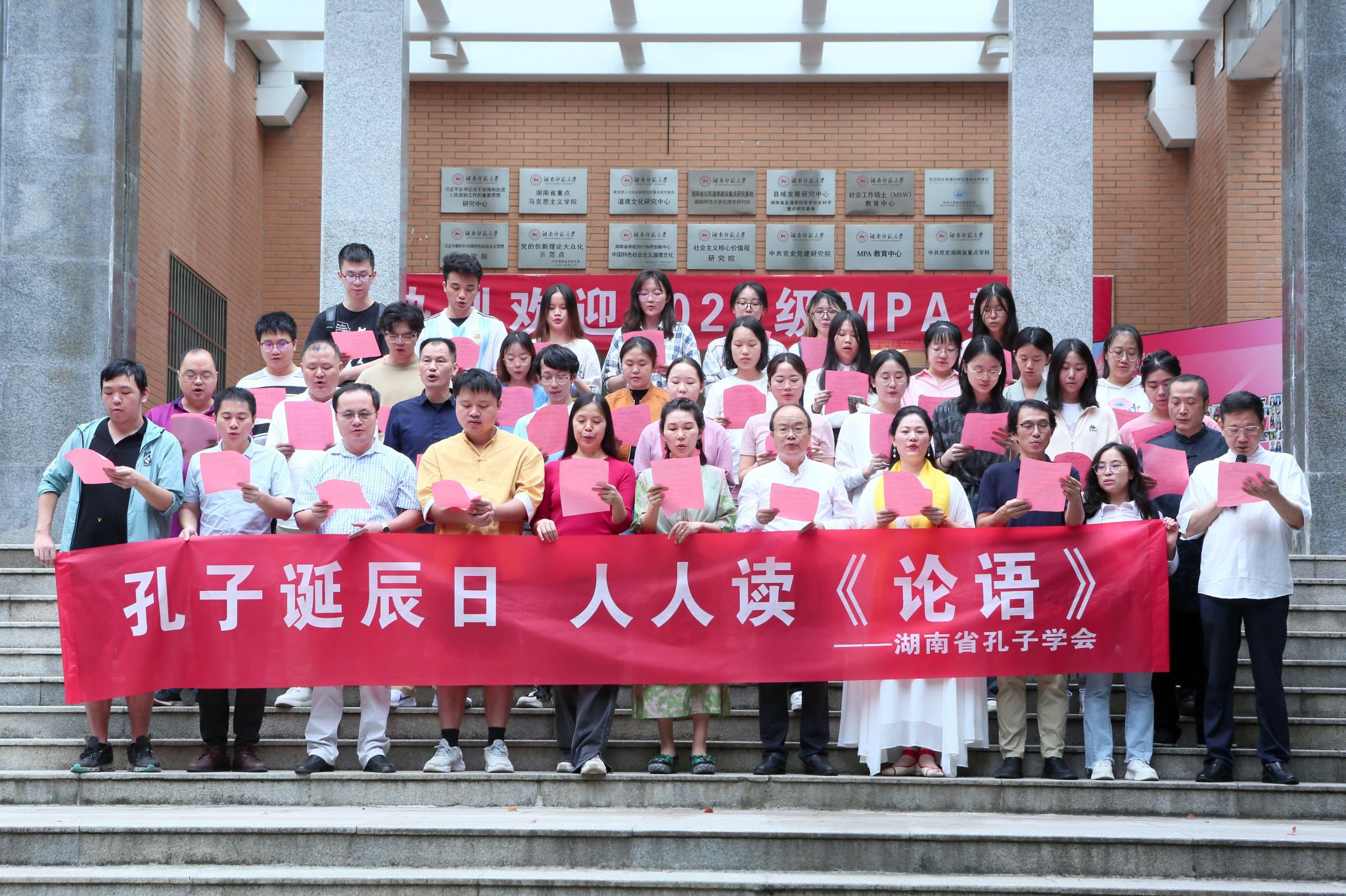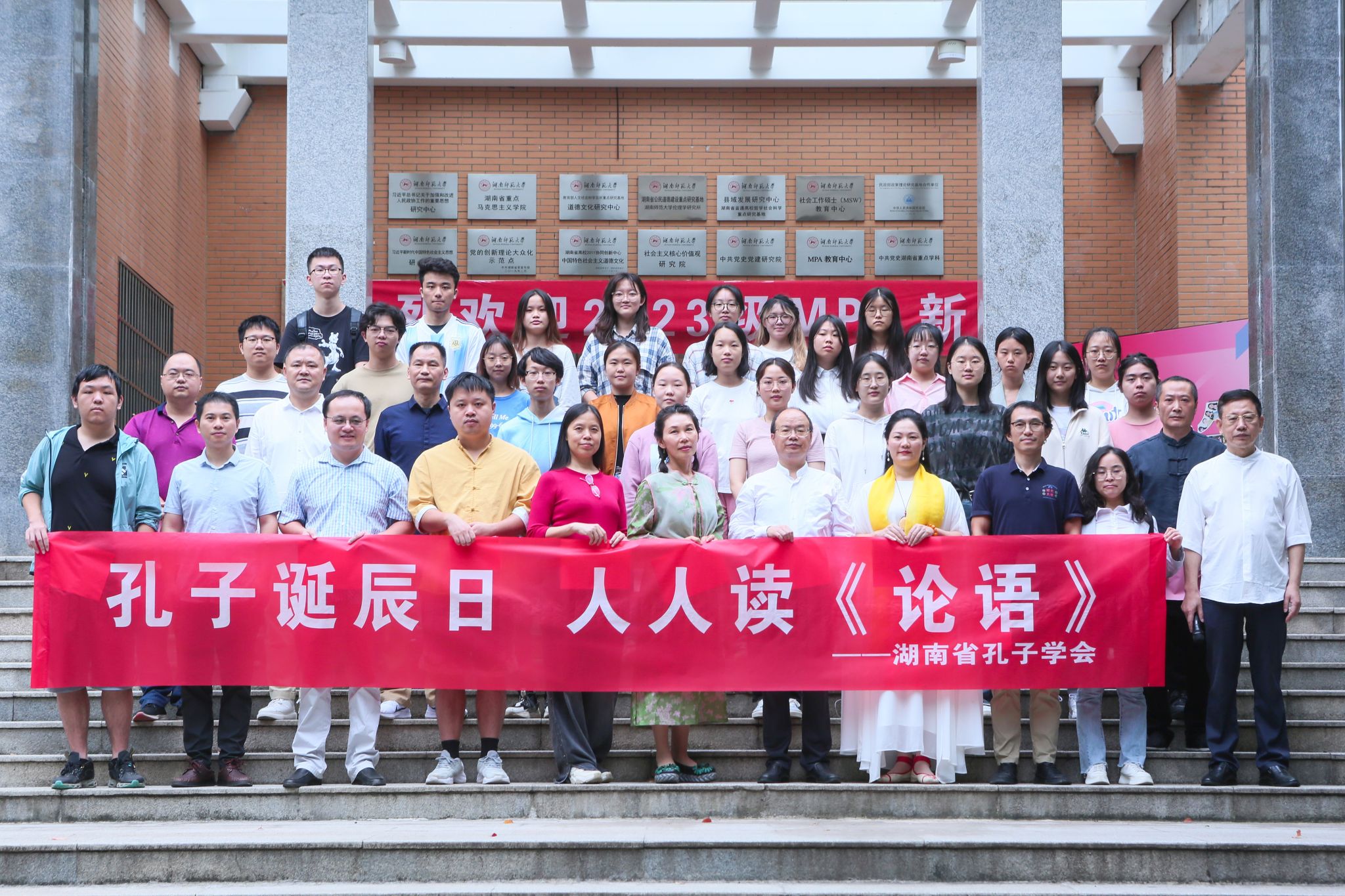 9月28日上午,为纪念孔子诞辰2574年,致敬伟大的至圣先师,致敬不朽的人文经典,积极传承与弘扬中华优秀传统文化,提升国民的文化自信与国学涵养,湖南省孔子学会在英国正版365首页景德楼庄重举行拜孔仪式和《论语》诵读活动,学会部分领导、常务理事、理事、会员及英国正版365首页哲学系2021级本科生参加了本次孔子诞辰纪念活动。“为天地立心,为生民立命,为往圣继绝学,为万世开太平。”希望广大会员和学子传承洙泗遗风,延续中华慧命,积极发扬仁爱精神,深厚培植家国情怀,奋力承担人文使命。