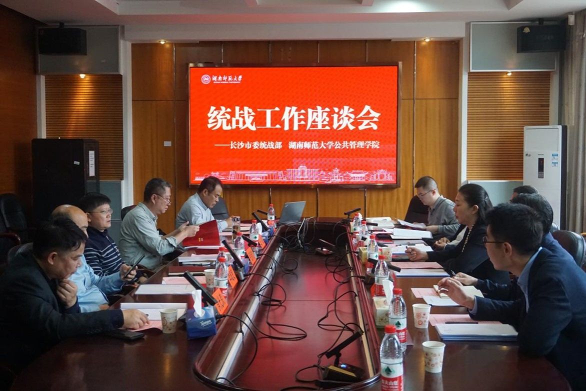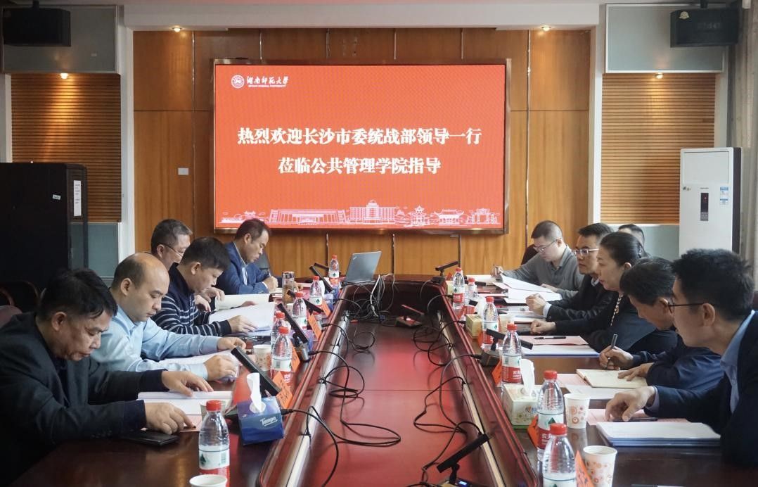 (通讯员 易婧鸿)2023年10月12日上午,长沙市委统战部常务副部长肖玮、副部长彭顺勇、四级调研员陶冶、综合协调处处长徐泽、党派处处长周述华、长沙县高桥镇党委书记姜海纳一行莅临我院调研交流。湖南省社会主义学院许奕锋教授、我校社科处副处长李超民教授、我院院长毛新志教授、副院长王敏教授、马克思主义学院肖光荣教授出席本次调研座谈会。会议由毛新志院长主持。