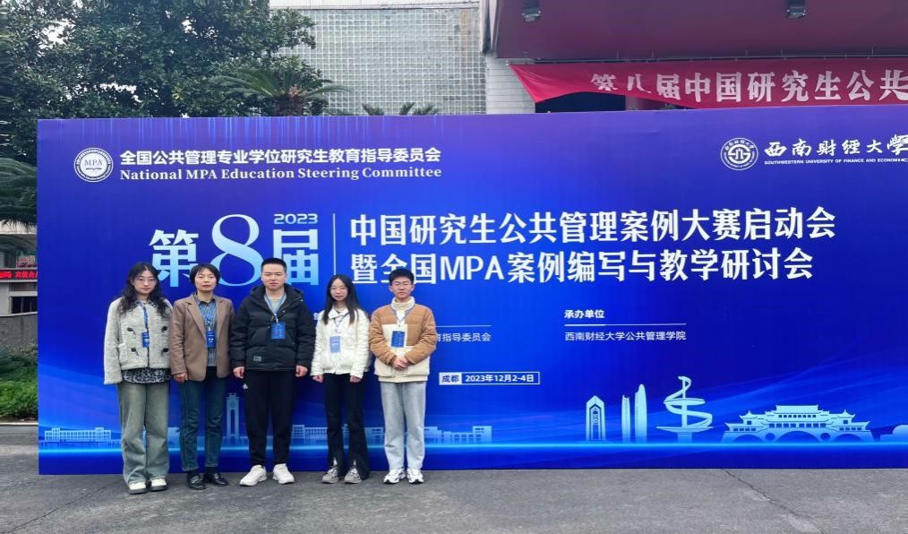 (通讯员 涂胜胜)2023年12月2日至4日,第八届中国研究生公共管理案例大赛启动会暨全国MPA案例编写与教学研讨会在成都市顺利举办,此次会议由全国公共管理专业学位研究生教育指导委员会主办,西南财经大学365英国上市集团承办。来自全国200所院校的500余名师生参加本次会议。我院副院长苏静教授,研究生办公室胡耀飞老师,硕士研究生姜淑新、高宇飞、涂胜胜参加会议。