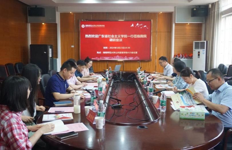 (通讯员 王瑞)2024年5月23日上午,广东省社会主义学院学术委员会副主任冯颖红、科研处处长刘明禄、科研处副处长谢伟杰一行莅临我院调研交流。我院院长毛新志教授,导师代表肖光荣教授,湖南省社会主义学院教研部四级调研员李功员、教研处副教授朱小宝,我院研办主任陈怡、辅导员胡耀飞以及统战方向硕士研究生代表张韵帆、徐秀婷参加了会议。会议由研办主任陈怡主持。