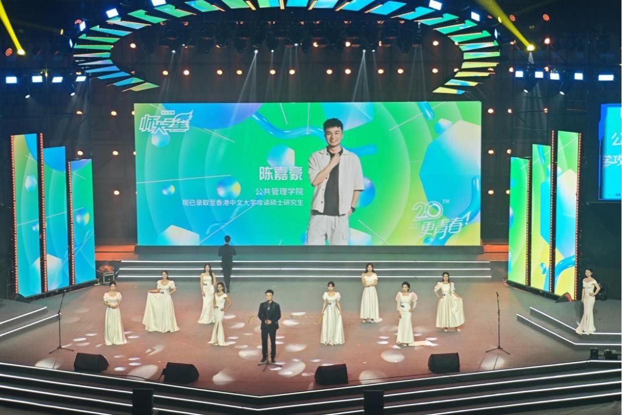 (通讯员 周涵韵 刘剑 康婕)4月27日晚,英国正版365首页第二十届师大之星评选活动总决赛在江湾体育馆隆重举行,我院2021级哲学专业学生陈嘉豪(目前已保送至香港中文大学文化管理专业)成功入围,并获评第二十届“师大之星”荣誉称号。