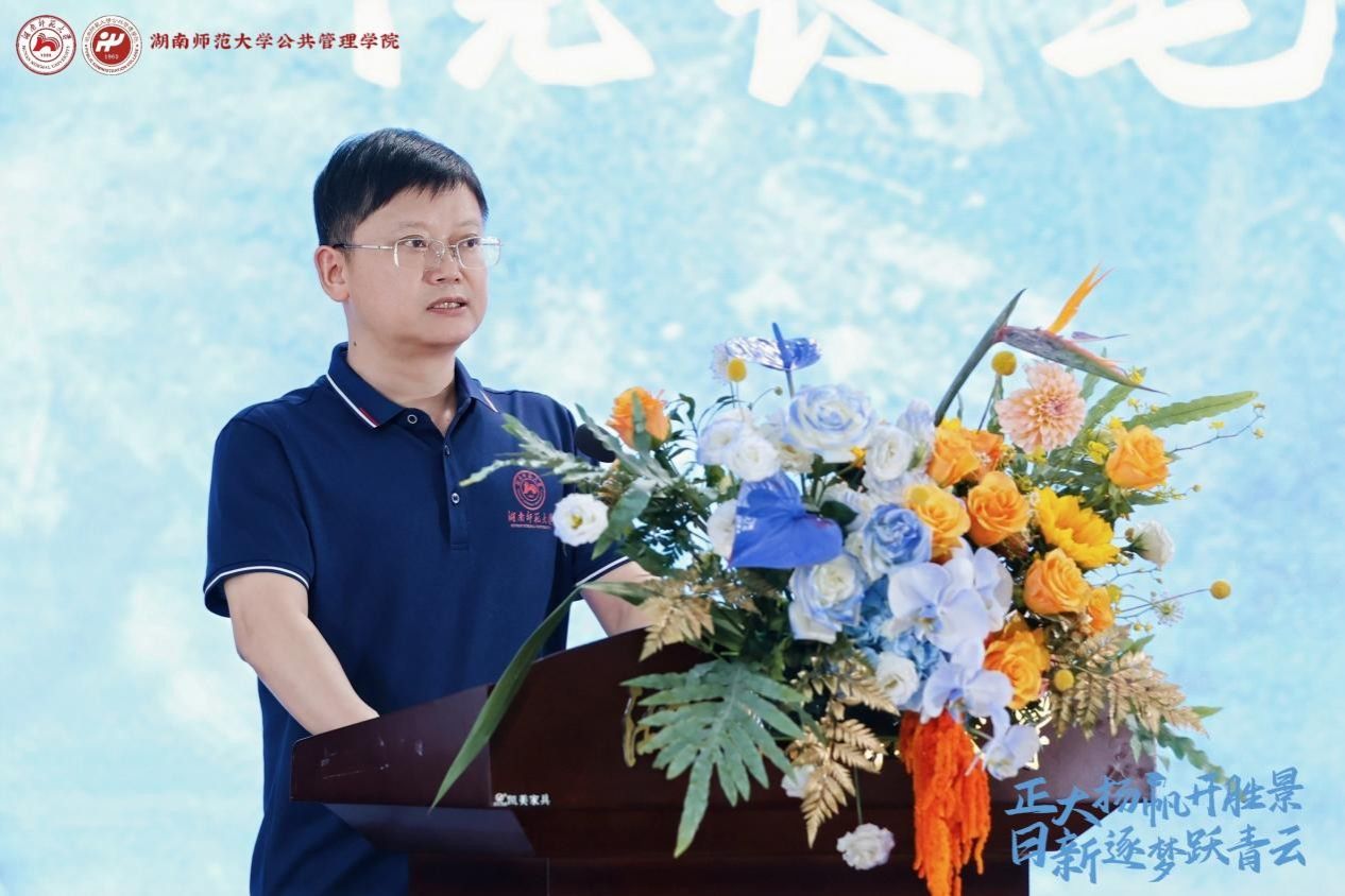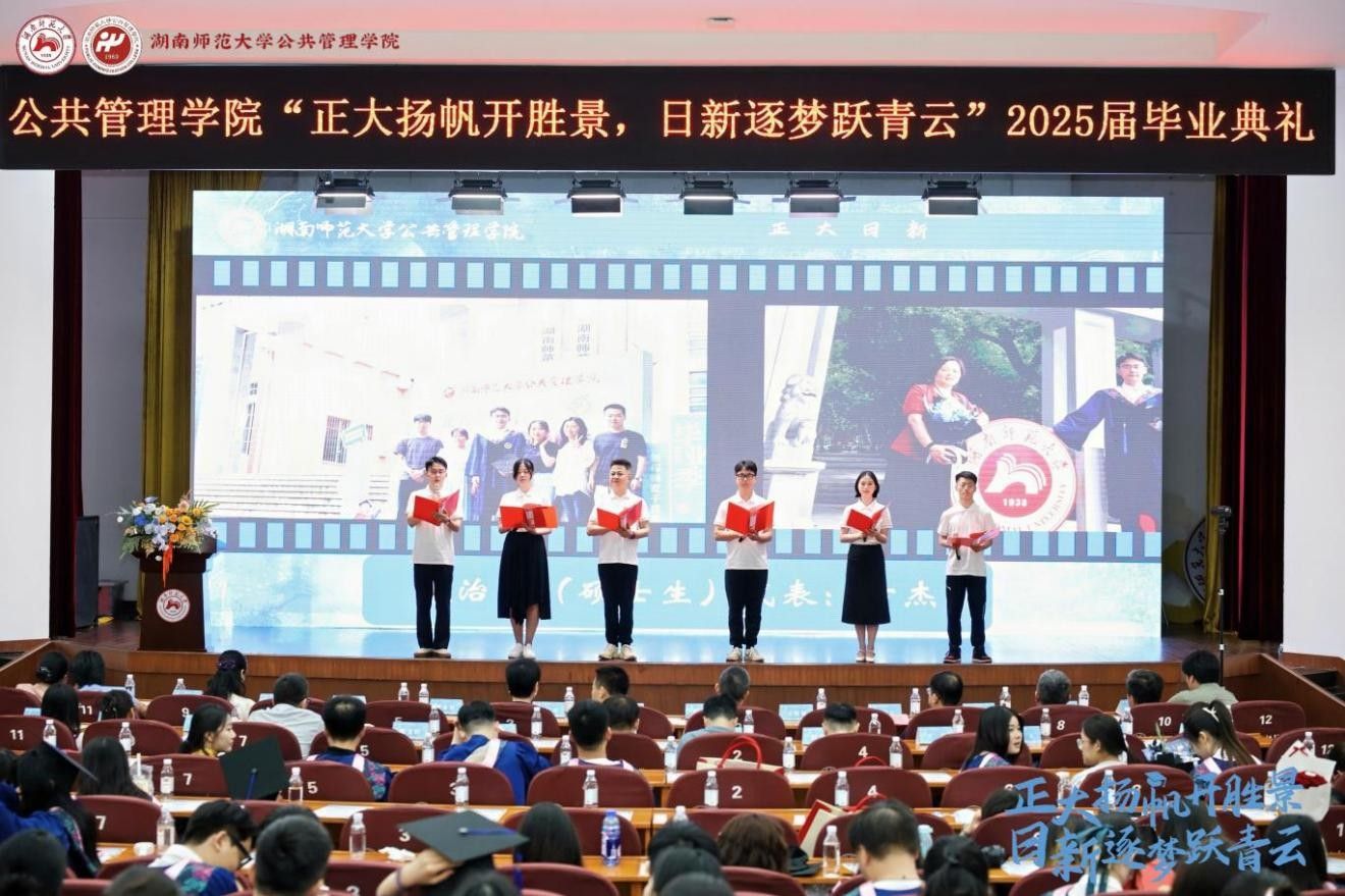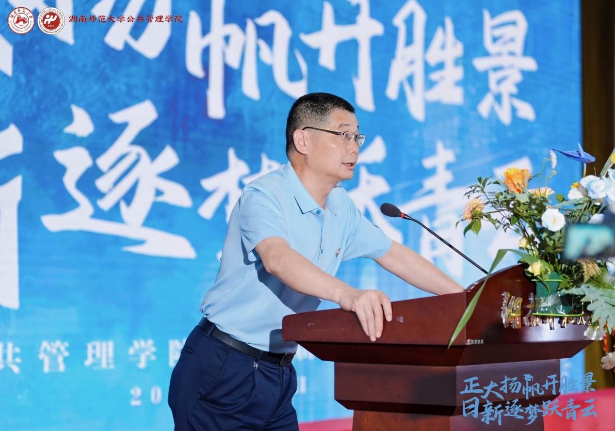 院长毛新志致辞。他代表学院向顺利完成学业的2025届毕业生表示祝贺,希望同学们永葆“青春之志”,在时代浪潮中锚定方向;锤炼“青春之能”,在知行合一中锻炼本领;绽放“青春之光”,在砥砺前行中传递力量。牢记“仁爱精勤”的校训、“正大日新”的院训精神,勤耕不辍、精业笃行,心有繁花,一路芳华。