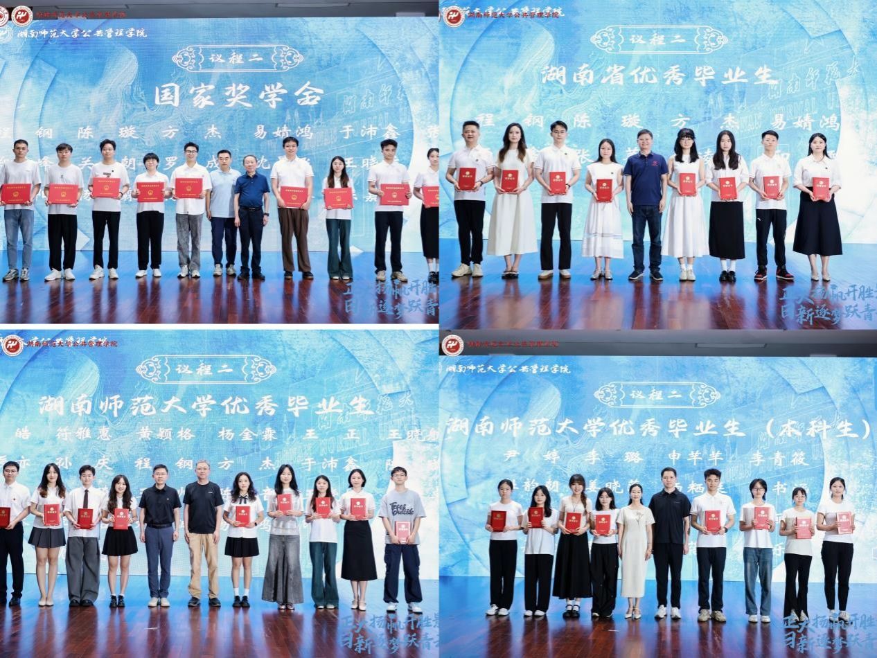 余望成宣读了国家奖学金、省优秀毕业生、校优秀毕业生、院优秀共产党员、院先进基层党组织等获奖名单与2025届校友联络员名单,领导嘉宾依次为获奖同学颁发荣誉证书,为校友联络员代表颁发校友联络证书。