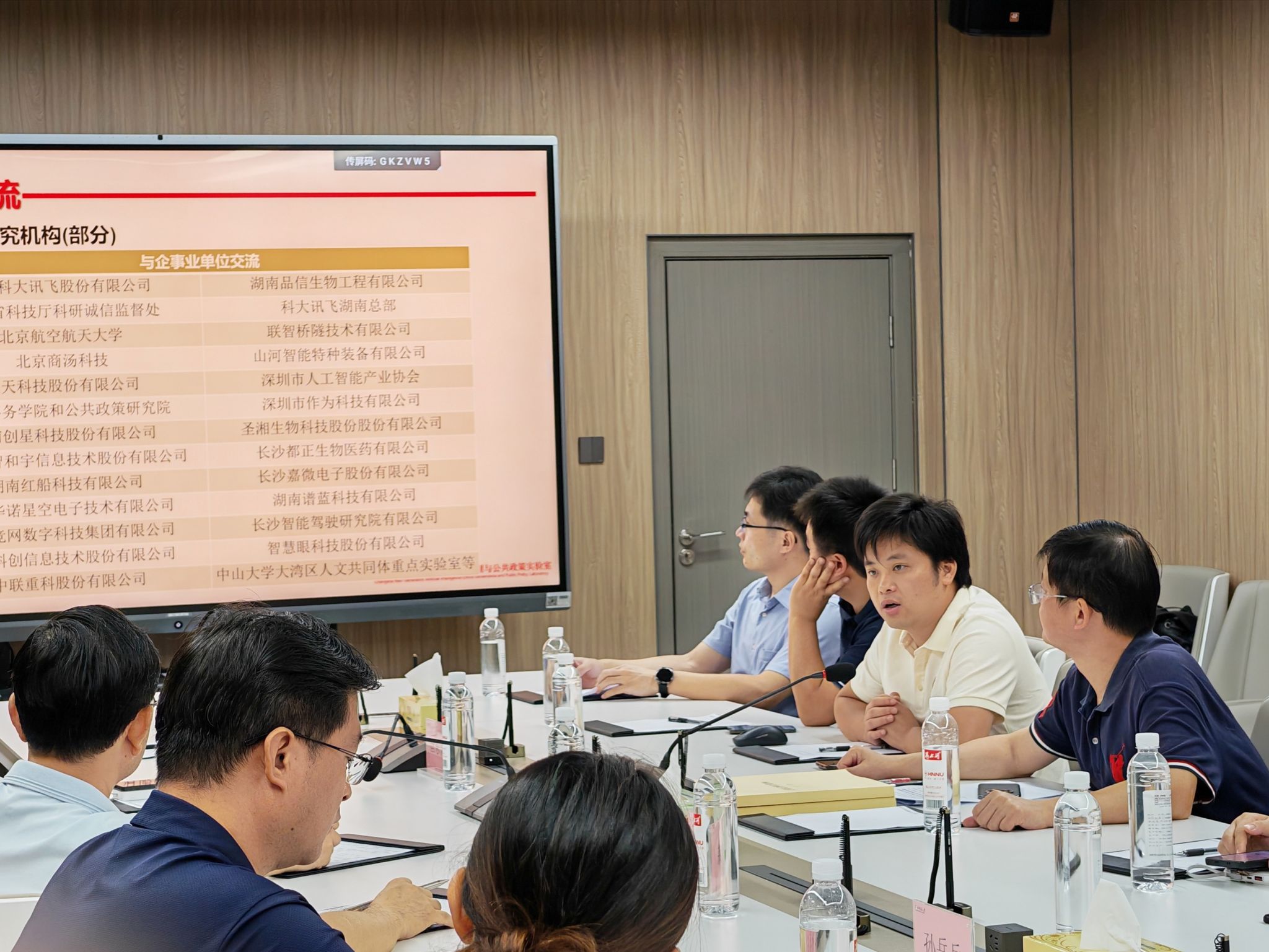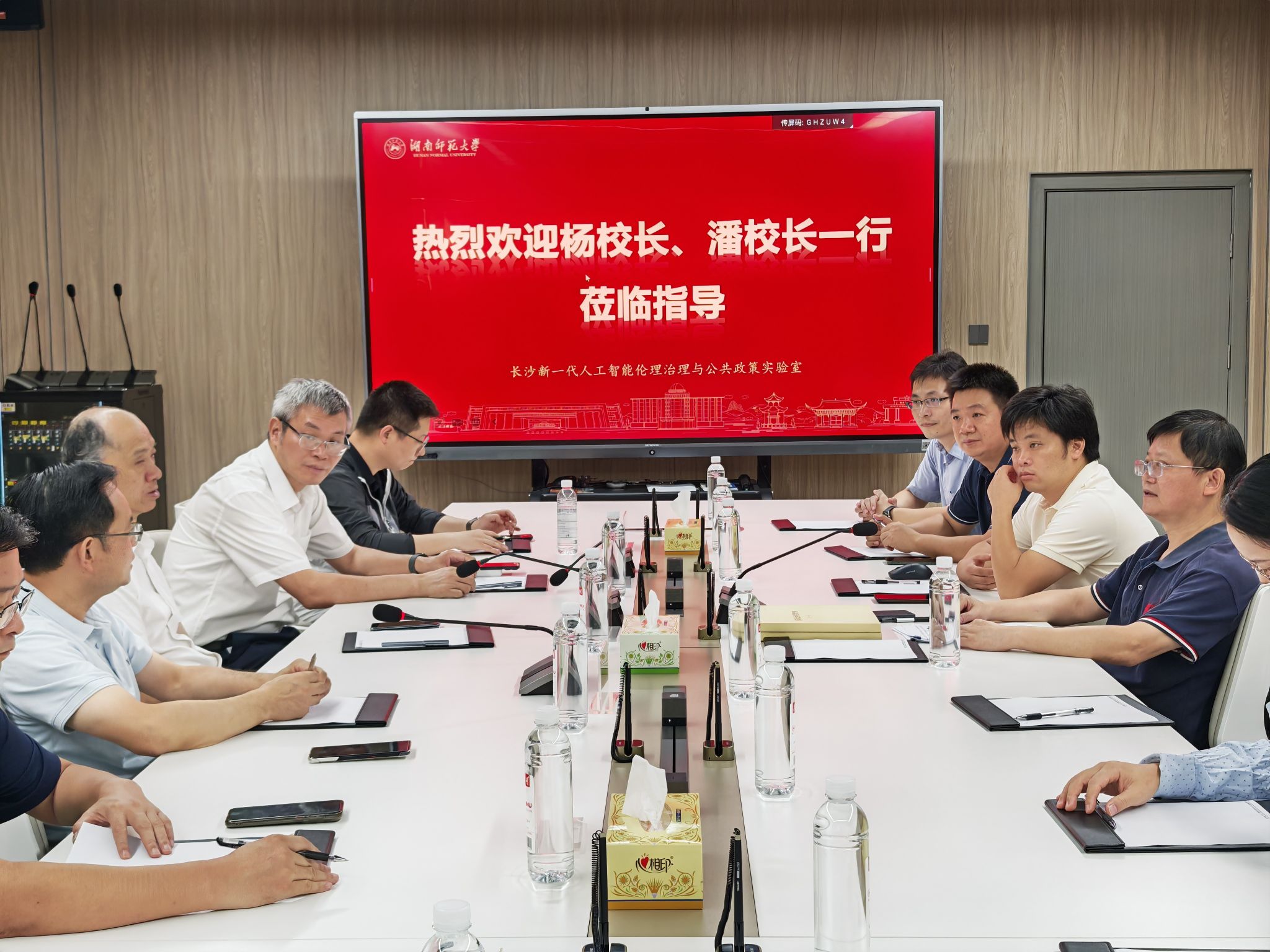 (通讯员:周航)2025年9月12日上午,英国正版365首页副校长杨震、潘安练一行莅临长沙新一代人工智能伦理治理与公共政策实验室视察指导。视察期间,实验室执行主任毛新志主持召开座谈会,实验室副主任文贤庆做实验室情况汇报。共同研讨实验室建设工作与未来展望,实验室全体成员参与座谈。