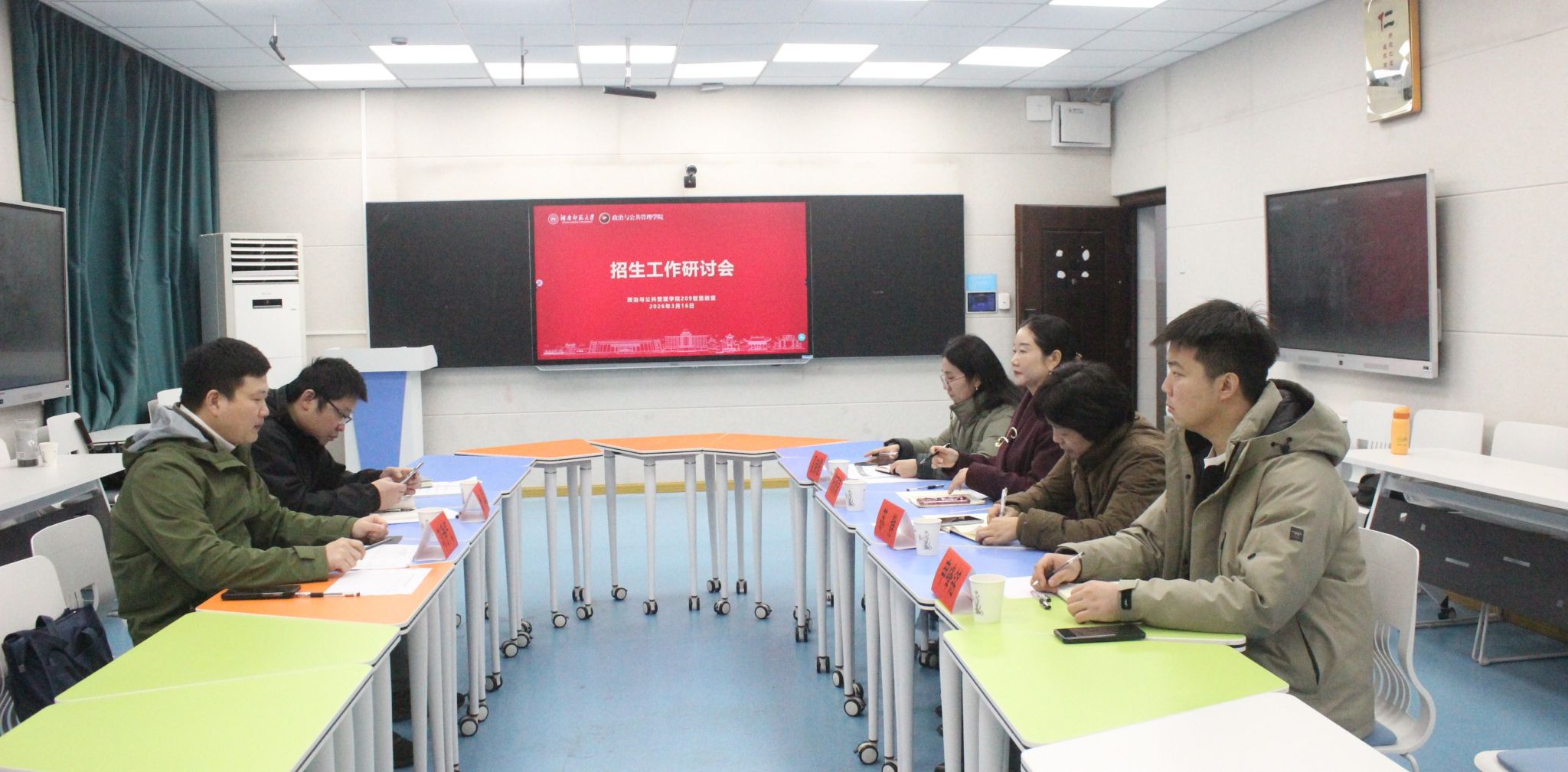 刘争气深入解读国家最新招生政策,系统介绍学校学科专业优化调整整体部署,结合我院政治学与行政学、行政管理、社会学三大专业近两年招生数据,进行复盘分析。针对当前招生工作实际,他强调学院要坚守人才培养质量核心底线,科学适度扩增招生计划、稳步提升办学规模;持续优化招生宣传工作体系,拓宽宣传渠道、创新宣传形式、强化宣传实效,全方位展现学院办学特色与专业核心优势,为学校“十五五”规划落地见效筑牢根基。
