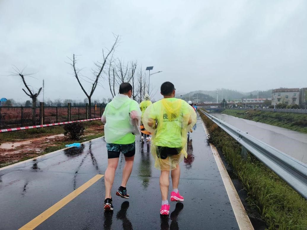 淅淅沥沥的春雨却挡不住跑者的步伐。赛程开始前,三位视障跑者在陪跑员与公管院志愿者的协助下更换赛跑衣物并披上雨衣。赛前,视障跑者们进行了简单拉伸运动,为赛程做好充足的准备。同时公管院的志愿者们分别前往五个地点为视障跑者与陪跑团提供物资保障与后勤支持,协助赛程的完成。发令声一响,在陪跑员与志愿者的陪同下,视障跑者牵着陪跑绳,进行“无障碍”奔跑。三位视障跑者认为马拉松的前半程是轻松的,而对于后半程,尽管在后期体力与耐力的逐渐消耗下,视障跑者也不曾半途而废,凭借他们惊人的毅力坚持下来,在雨天天气的干扰下依然以两小时的佳绩完成了比赛。赛后,视障跑者向大家分享:雨天虽然会减缓我们的速度,但始终无法阻挡我们奔跑的步伐。志愿者罗敏表示:视障跑者们只用了两小时便跑完了21公里,这是一件令人惊叹的事。