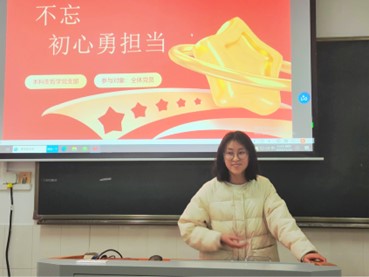 活动开始,罗静为全体党员介绍了中国共产党章程的具体内容,重点讲解党员应该履行的八项义务。罗静强调,青年人为人处事务必要以马克思主义为指引,将自己融于人民群众中,在一切困难和危险的时刻敢于挺身而出,不怕牺牲。针对“找差距、抓落实”的要求,罗静以党的纪律为基础进行解读。要找到差距,首先要在精神上对标革命前辈,其次要反省自身是否遵守纪律、是否廉洁守己、是否务实担当,明白当前不足并以问题为导向才能进一步增强党性。活动最后,罗静表示全体同志要倍加珍惜党员这个身份的荣光,凝聚理想的火炬,点亮奋进的道路。