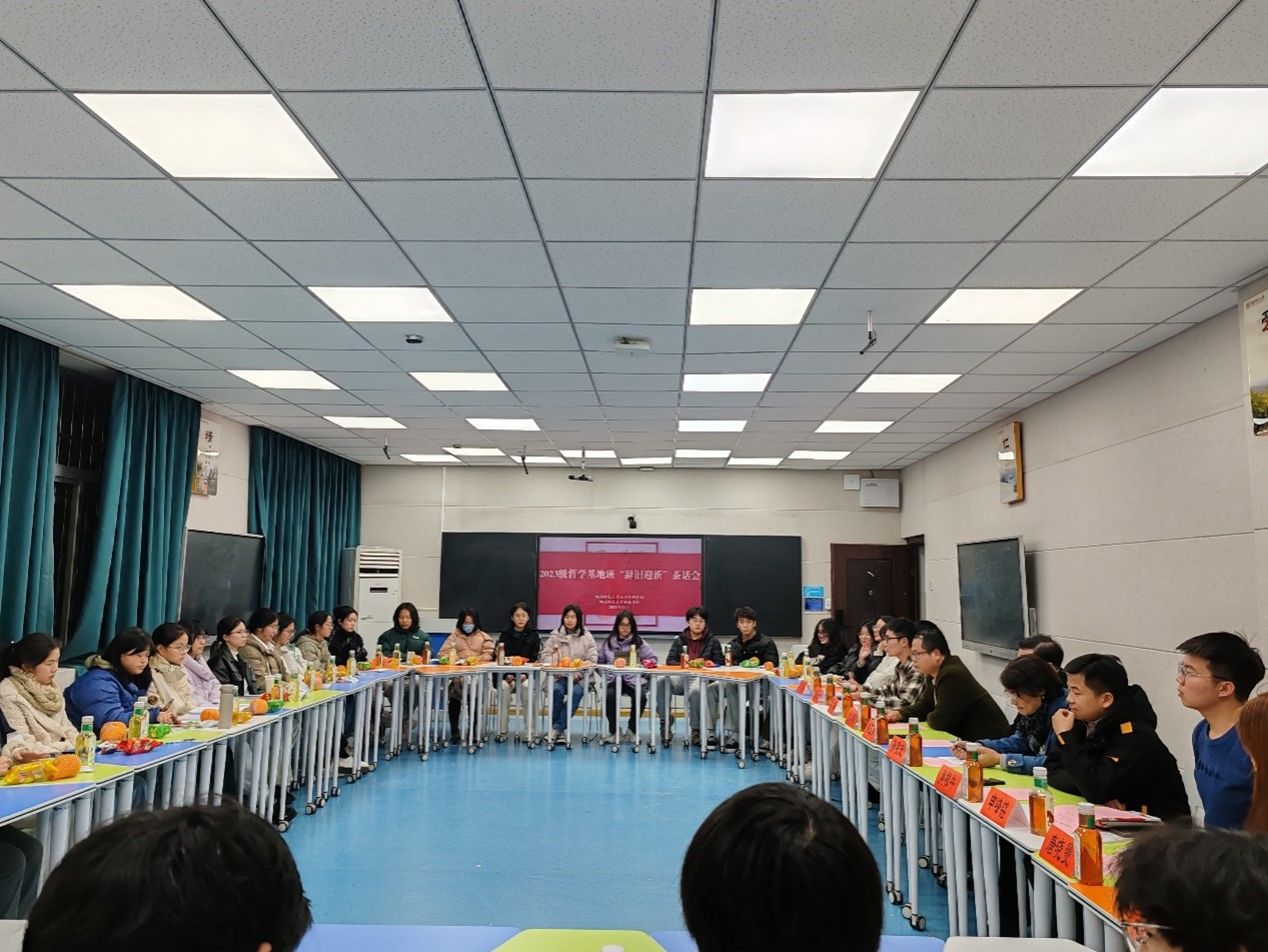 (通讯员:杨语欣)为总结本学期班级建设成果,进一步增进师生交流和提高班级凝聚力,2023级哲学基地班于2023年12月28日晚19点在景德楼举办“辞旧迎新”茶话会,畅谈学习生活中的酸甜苦辣,展望丰富多彩的未来蓝图。道德文化研究院院长兼哲学系主任向玉乔教授、院党委副书记孙雯波副教授、哲学系副主任黄泰轲副教授、哲学系副主任肖根牛博士、哲学系青年教师李铖博士、学院23级辅导员申峰铭老师、世承书院23级辅导员唐晓曼老师,以及2023级哲学基地班下班干部李东林、王谈昶及2023级哲学基地班全体同学出席本次茶话会,哲学系青年教师、2023级哲学基地班班导师胡景谱博士主持会议。