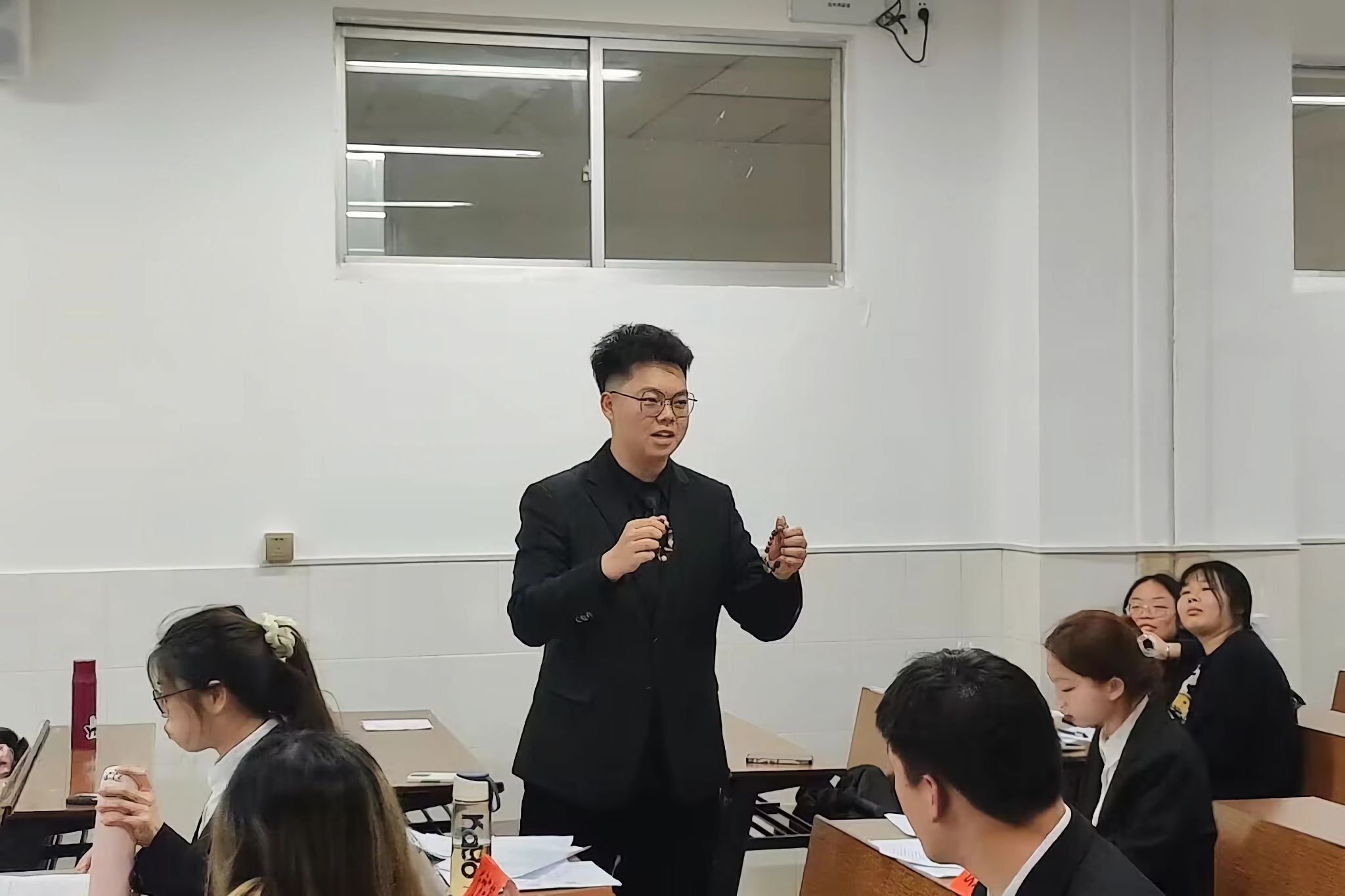 此次比赛中,公管院辩论队上场辩手为一辩陶子萱、二辩罗紫妍、三辩于帅、四辩李青筱。其中陶子萱为23级辩论队新成员,李青筱为21级辩论队队长。此次比赛正方为物理与电子科技学院辩论队(以下简称物电院辩论队),辩题为“通过制造爆款发展传统文化的方式可取/不可取”,评委为文学院李文昊、商学院黄奕凡、外国语学院李凡。