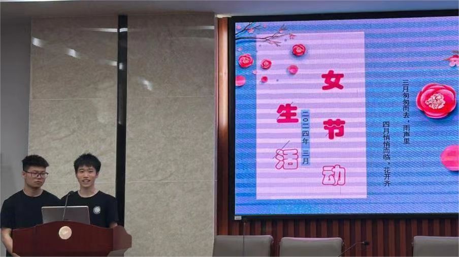 此次活动主要分为女生节祝福、女生节游戏与聚餐活动三部分。晚会开始前,宣传部与健康服务部成员提前准备好团建所需的物资并进行现场布置。健服部志愿者负责组织进行现场游戏环节,调动参会人员的积极性。活动开始后,参会人员共同观看了由各部门男生录制的节日祝福视频并发放了女生节礼物。健服部组织了“比长短”“肢体传递”“害你在心口难开”等一系列女生节特色游戏活动,在游戏活动进行期间,大家围坐在一起进行了积极友好的交流。游戏结束后,大家进行聚餐活动,宣传部同学为近期过生日的同学切生日蛋糕,表达了学生会成员对全体女生成员的节日祝福。