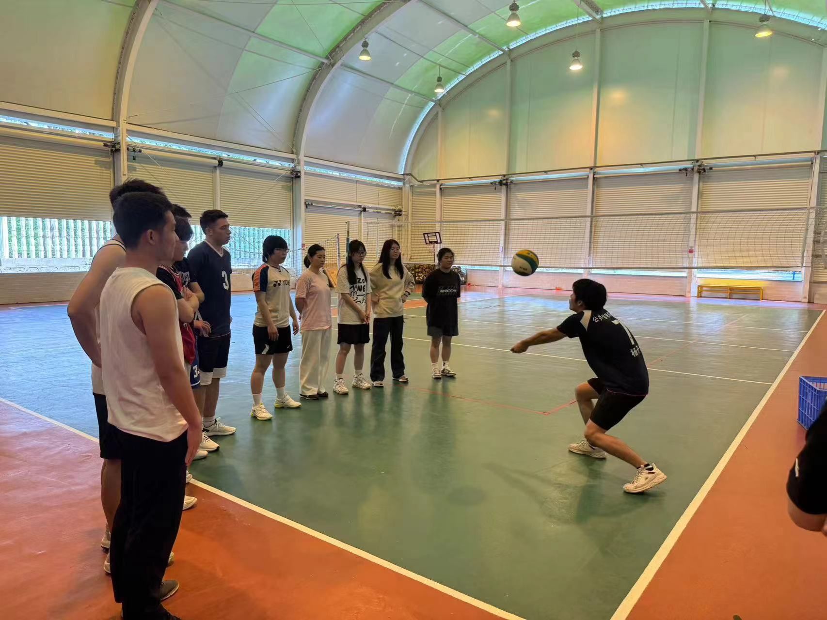 首先,文体部工作人员提前选好训练场地,并准备训练道具,为开展高效训练工作做好了充分准备。排球队队员们在体育馆集合,由文体部志愿者清点人数。随后22级杨子奇讲解排球的基本动作,安排训练任务。第一次排球训练主要注重基础技术的巩固和体能的提升,队员们各自练习垫球,发球和扣球等基本技术,熟悉比赛节奏和强度,增强耐力与力量。之后,队员们又进行了团队配合训练。团队互动练习使得球员们可以更好地了解彼此,团队默契程度和整体能力得到了有效提升。最后,文体部负责人点评队员的表现,提出合理的建议,总结此次训练的成果。