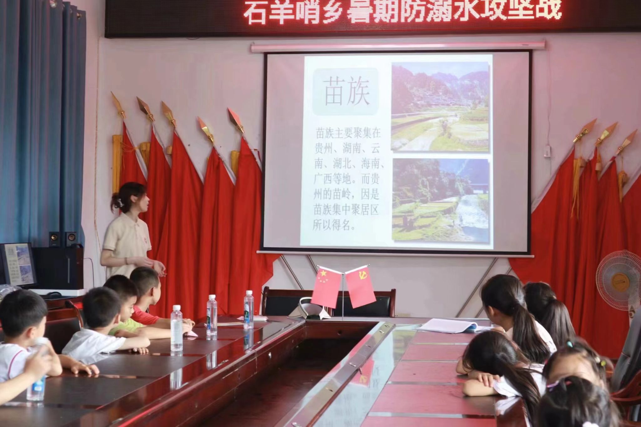 7月8日上午,在苗族音律鉴赏课程的教学中,庄依诺通过提问互动的方式向同学们介绍了苗族的传统文化,并与学生共同赏析苗族音乐特色。接着,雷心怡开展青少年心理健康课程的教学,共分成三个部分:分析自我、认可自我及发展自我。她通过让学生进行“认识自我”的绘画,引导学生探索自我,增强自我心理素质。