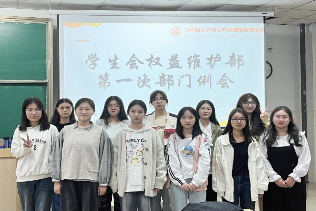 (通讯员:邱乐涵 李荣 )10月19日下午,公管院学生会权益维护部第一次部门例会在景德楼南栋204教室举行。主席团成员刘天姿,权益维护部部门负责人李亚璇,志愿者负责人李荣、谭景月以及八名志愿者参加此次会议。李亚璇宣布第一次部门例会正式开始,并代表权益维护部对24级新生志愿者表示欢迎。接着,志愿者们依次做自我介绍,表达了共同进步的美好愿景。李亚璇强调了工作交流中的礼貌问题,她要求志愿者们熟练掌握各类办公软件,并讲解了即将开展的第十八届“自强之星”活动注意事项。随后,谭景月就卫生保障工作进行了介绍,明确了工作中需要注意的细节问题。李荣介绍了权益工作安排,要求志愿者们认真做好同学们权益问题的收集工作,切实维护好同学权益。最后。刘天姿强调了要践行全心全意为同学服务的宗旨,要求志愿者们配合部门工作,积极参加各类活动,向党团组织靠拢。此次会议有效地加强了负责人与志愿者之间的协作与交流,增进了权益维护部的凝聚力,为后续开展工作做好了准备。