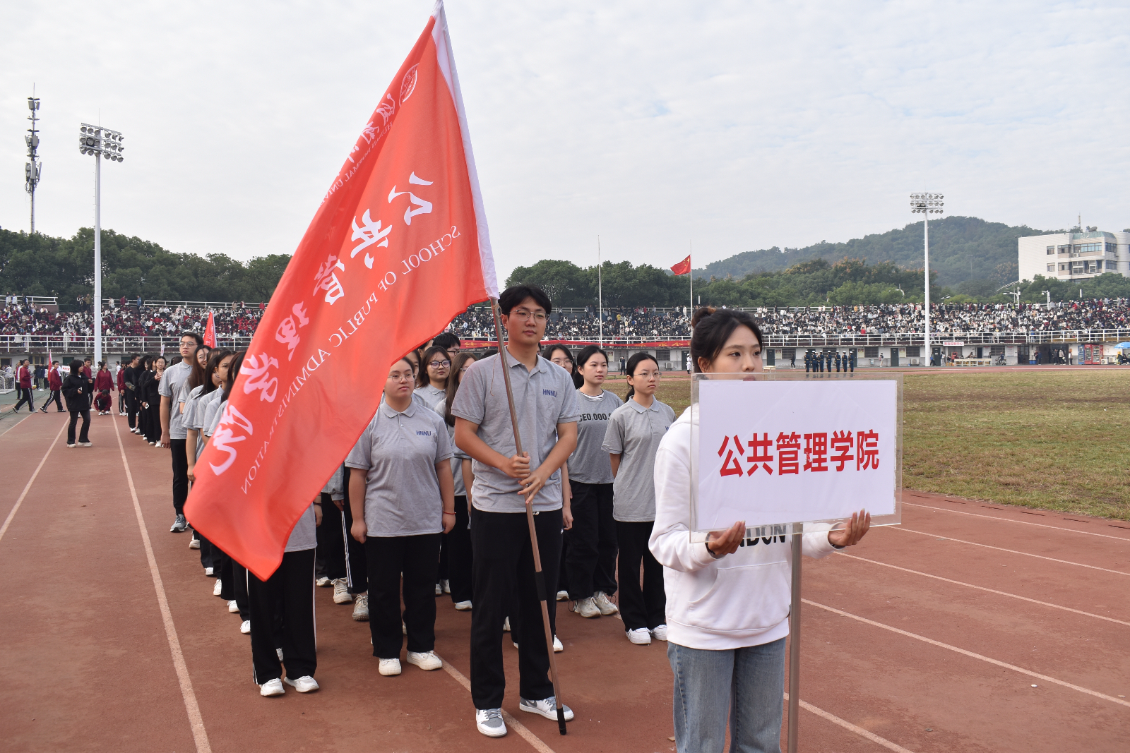10月25日,文体部志愿者负责人王文桐带领公管院学生代表队参加校运会开幕式。在田径赛场上,参加各项比赛项目的运动员们展示个人能力和竞技水平。趣味赛事中,运动员们相互配合,展现集体精神。观看比赛的同学们为运动员们加油助威。文体部工作人员做好水源补给、签到、维持场内外秩序等各类后勤保障工作,使运动员们能够顺利完成比赛。在全体师生的共同努力下,公管院获得体育道德风尚奖。