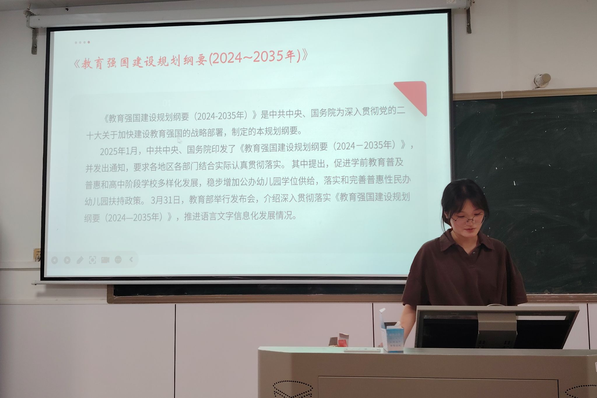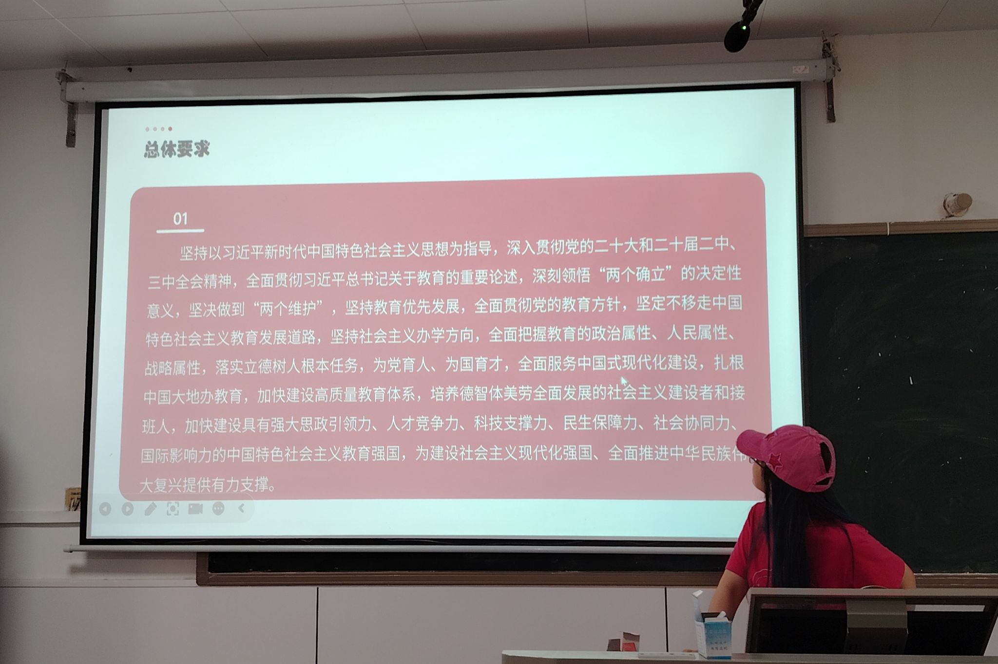 活动中,主讲人围绕“强国蓝图引领,青春逐梦奋进”这一主题,从宏观层面讲述教育强国建设的背景、目标、战略举措以及对国家发展的重要意义。小组成员围绕《教育强国建设规划纲要(2024~2035年)》的内容展开讨论,分享自己对教育强国建设的思考以及作为青年学生在其中可以承担的责任和使命。主讲人指出,作为大学生,应结合自身专业和兴趣,积极探索在教育强国建设中可以发挥的作用,为未来的职业发展和个人成长明确方向,培养社会责任感和使命感。