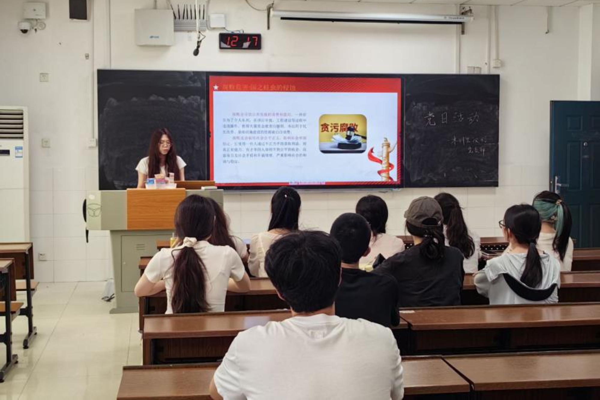 以五四精神为出发点,结合党的廉洁思想,主讲人王蕊从历史事件、事例分享、青年担当三个方面进行主题分享,带领党支部成员深入学习五四精神以及青年的倡廉使命。随后,王蕊通过分享焦裕禄和黄文秀的事迹阐述了廉洁自律对于党员干部的重要性。她表示,廉洁自律既是党员干部的优良传统,也是基本政治操守。她从青年担当角度出发,呼吁党支部成员要坚定理想信念、锤炼意志力;要秉持优良作风,厚植坚忍力,主动肩负起时代重担。