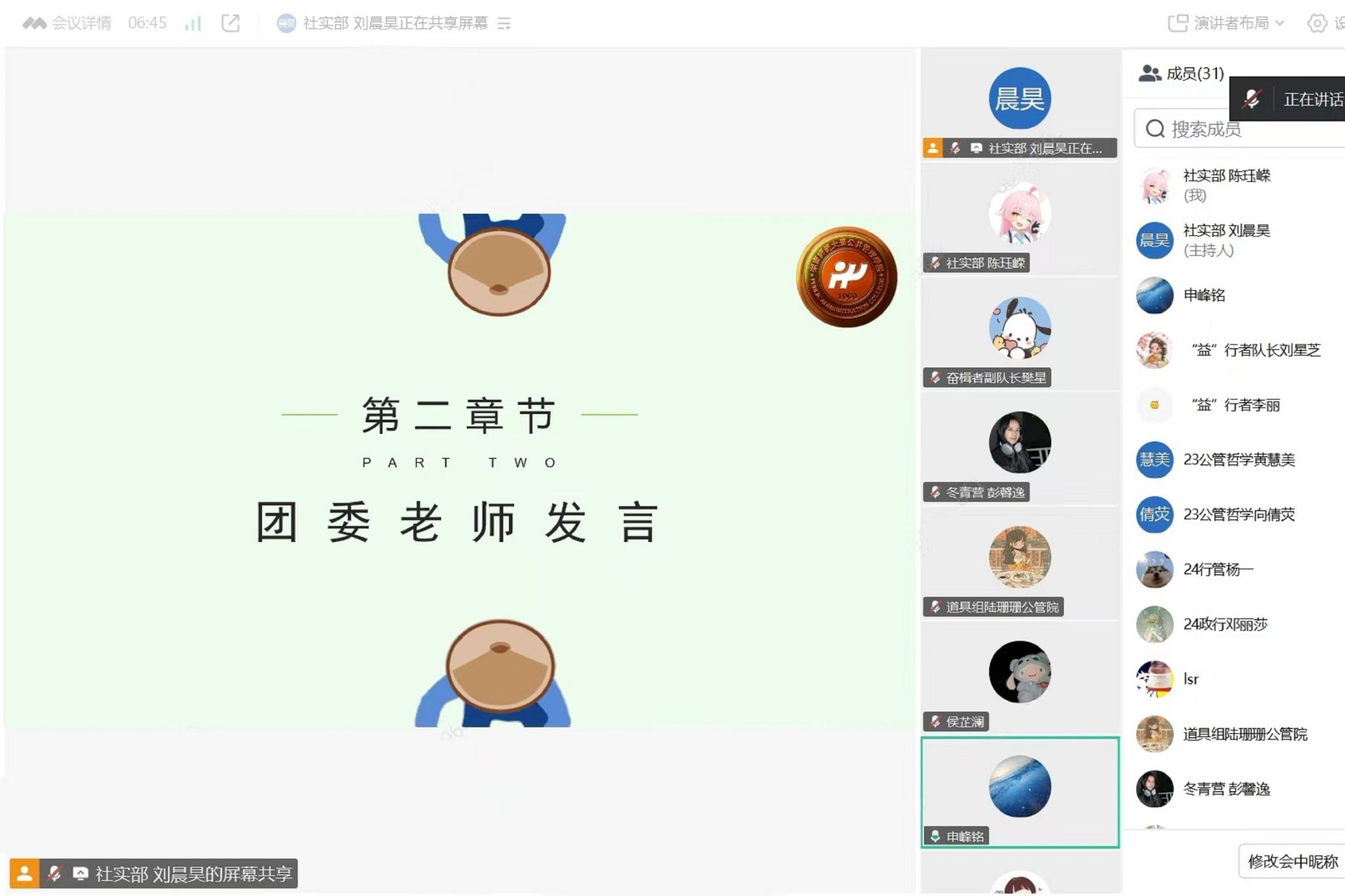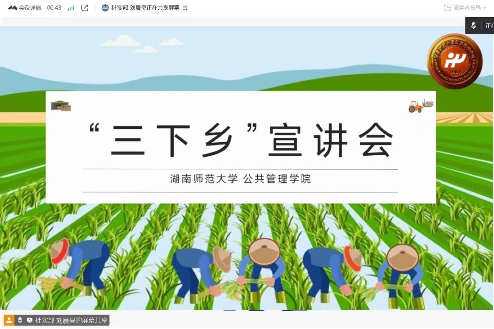 (通讯员 张佩研 陈珏嵘 谭欣雨)6月4日中午,为帮助同学们深入了解各实践队伍特色,推动暑期三下乡实践活动有序开展,365英国上市集团(以下简称“公管院”)团委社会实践部(以下简称“社实部”)通过线上平台举办三下乡招新宣讲会。社实部负责人刘晨昊担任会议主持,团委负责人申峰铭受邀参加,公管院三下乡各实践队队长、现有实践队伍成员及有意参与暑期社会实践的同学共同参会。