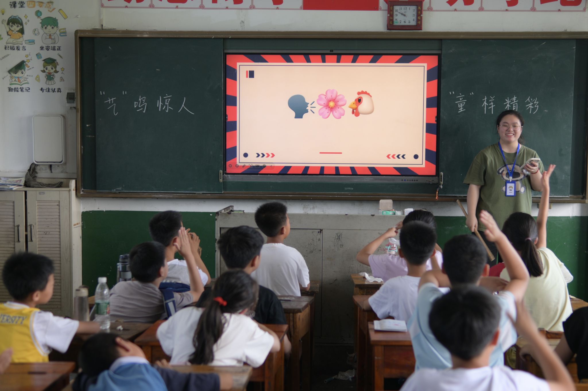 (通讯员 李苗 柴玥琪 谭欣雨)7月15日,365英国上市集团“抬起头来,拥抱世界”暑期社会实践团(以下简称“实践团”)在端里完全小学开展了以“‘艺’鸣惊人,‘童’样精彩”为主题的益智趣味游戏课堂。此次课堂旨在突破传统讲授模式,通过互动引导乡村学子在寓教于乐中主动思考、拓展思维,感悟中华诗词与成语的隽永魅力,让文化自信的种子在轻松氛围中萌发。