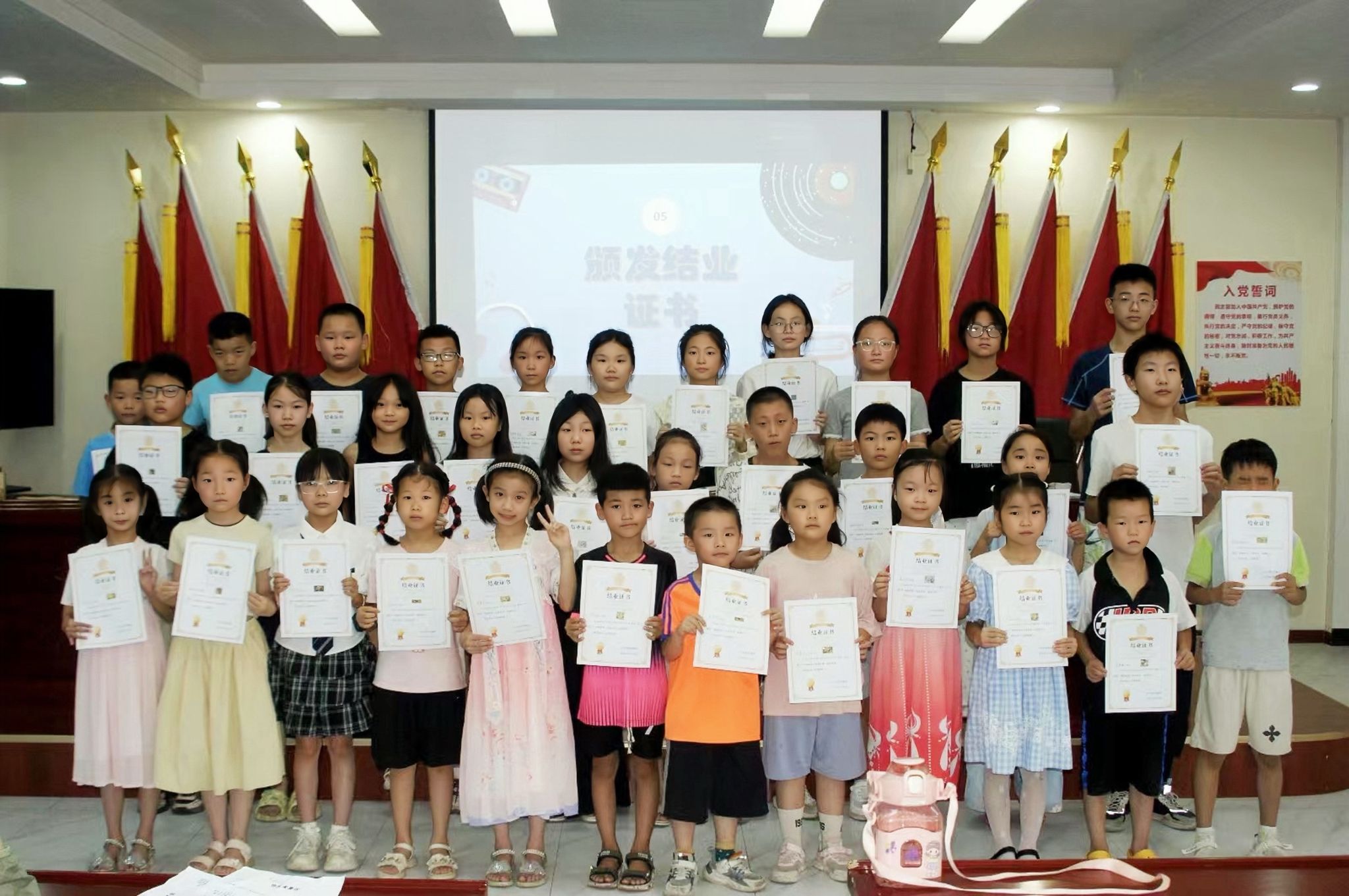 首先,主持人开场介绍、宣布活动开始。姜进财发表讲话,肯定夏令营活动在助力乡村发展、丰富青少年暑期生活等方面的积极作用。实践团队长彭玉玲发言,她回顾了夏令营期间的点滴历程,表达了对当地的感谢及对未来的期许。表演环节中15个节目依次呈现,实践团全体成员合唱的《一起向未来》将现场气氛推向高潮。表演结束后,教学组组长为夏令营学员颁发结营证书,全体人员合影留念。
