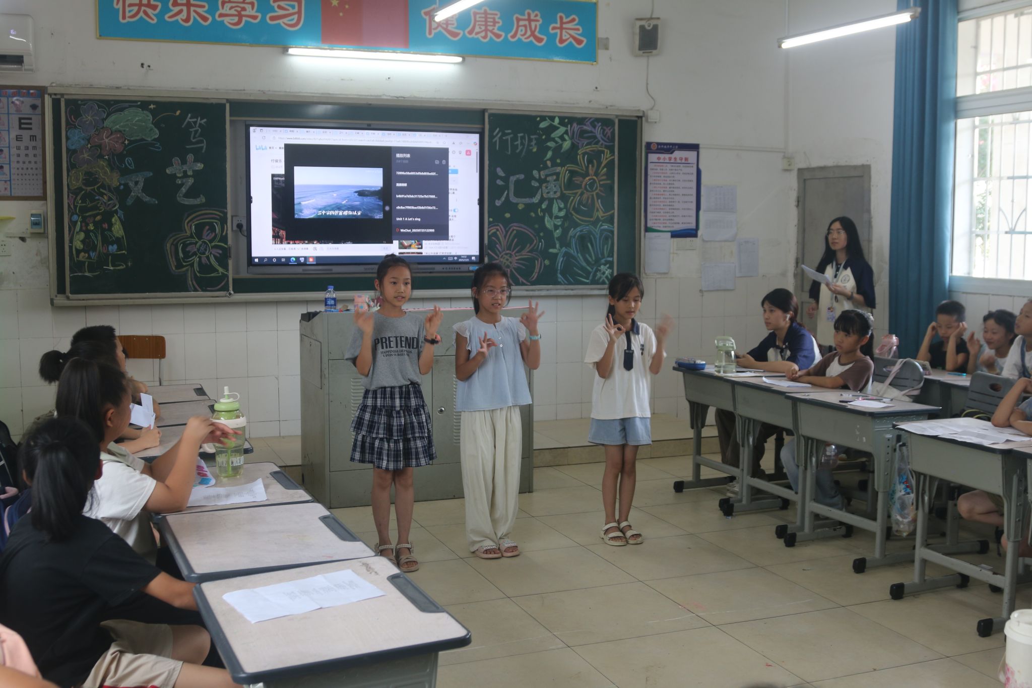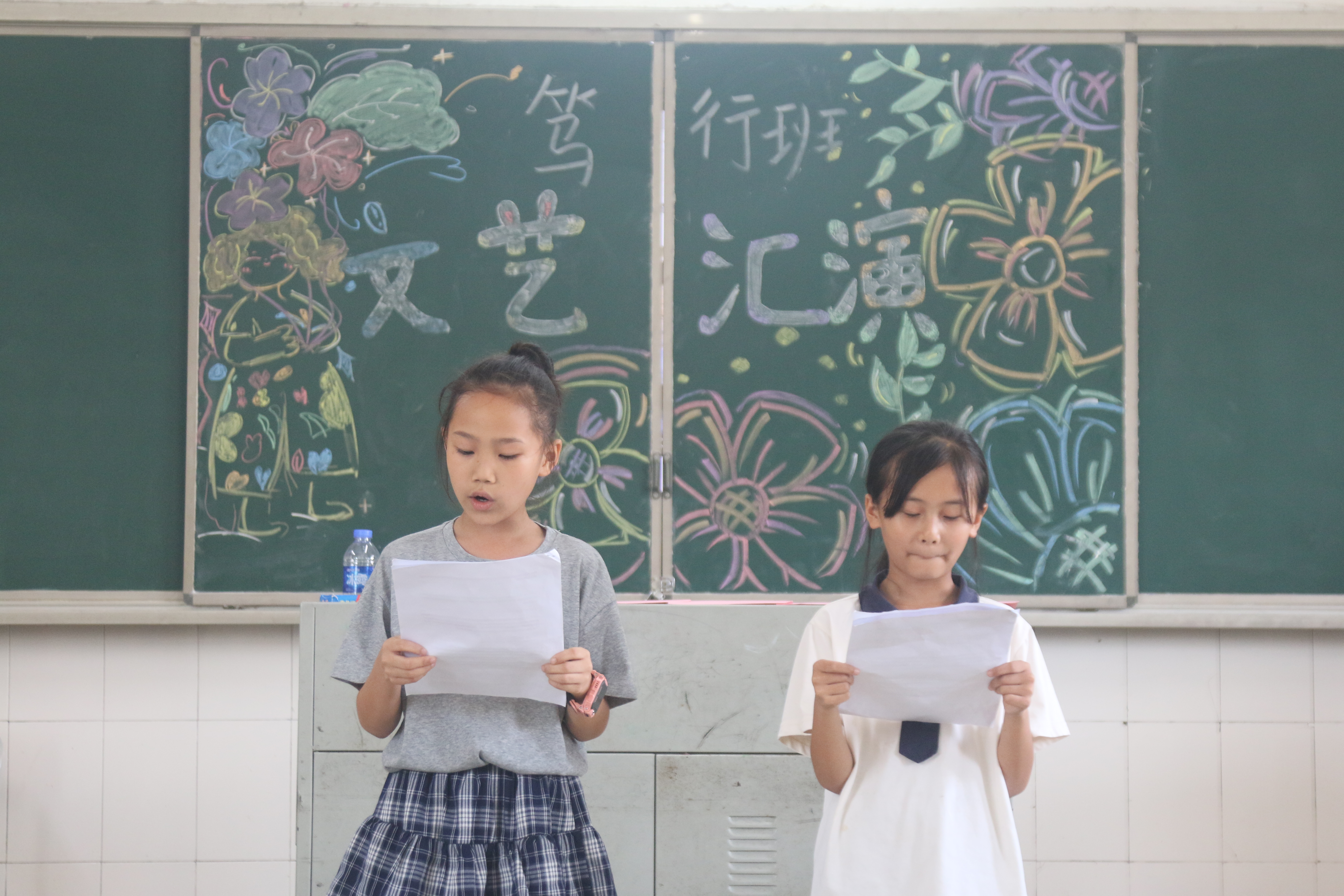 在汇演筹备阶段,实践团成员鼓励学生自愿申报节目,学生积极响应,自主申报了涵盖舞蹈、歌唱、朗诵等形式的多个节目。实践团对申报节目进行登记整理,形成节目单,并利用课余时间协助学生进行简单排练指导。汇演当天上午,成员们共同布置场地,包括摆放桌椅、绘制黑板,并规划好表演区与观众区。
